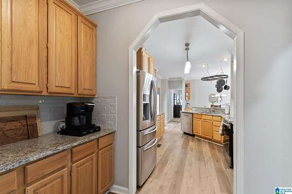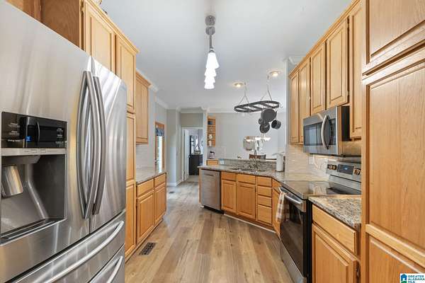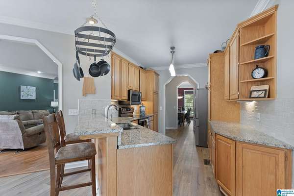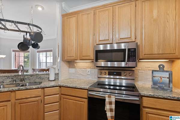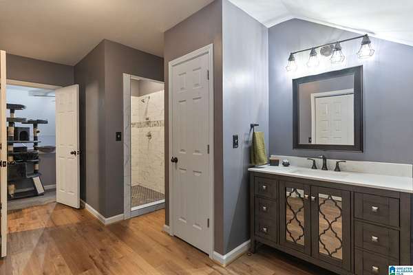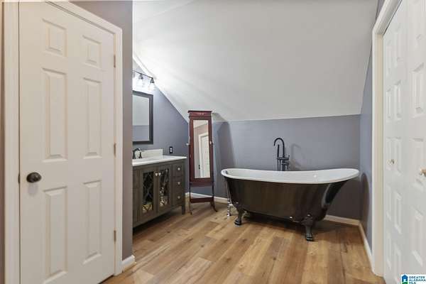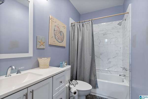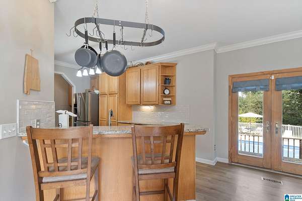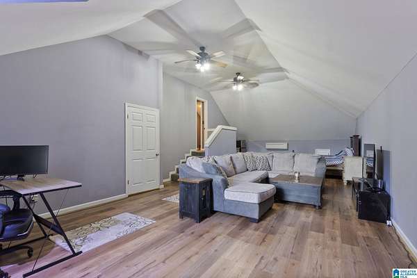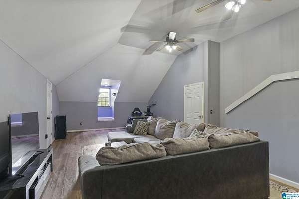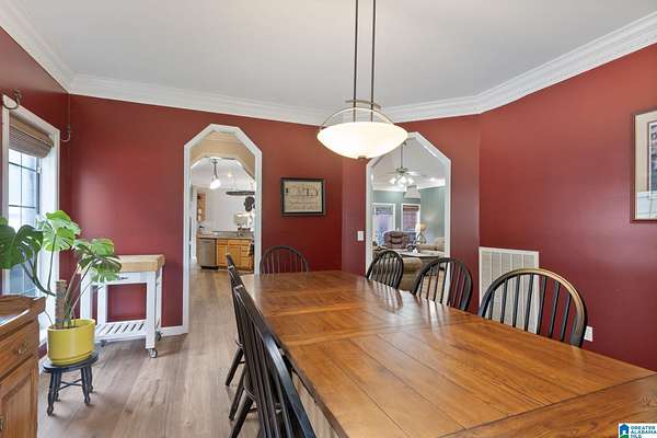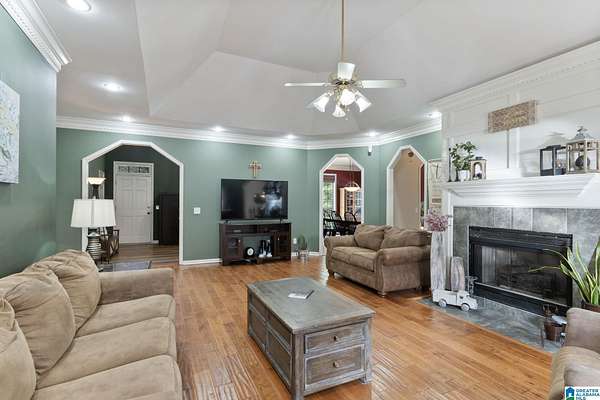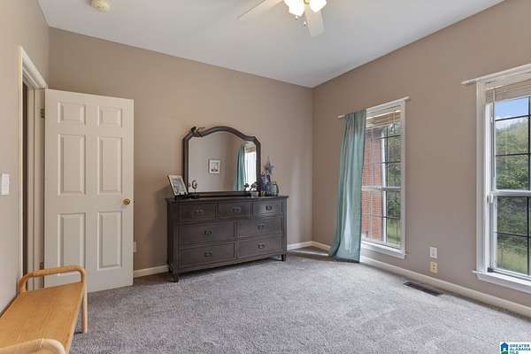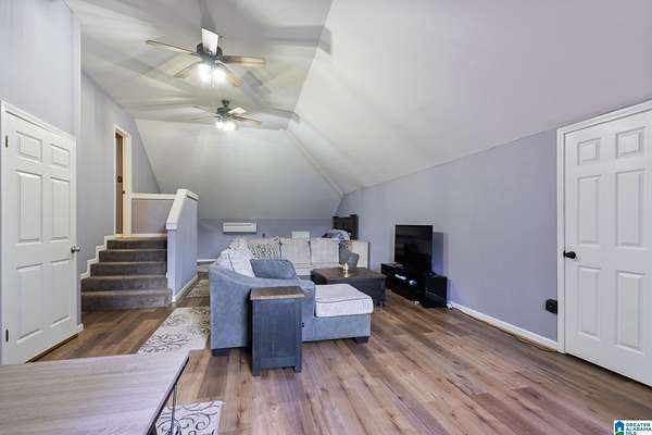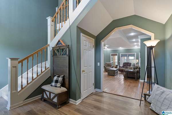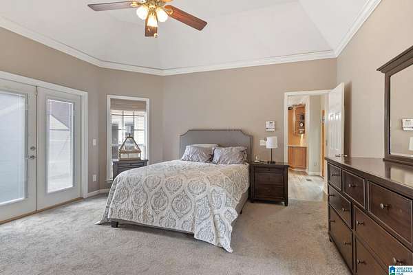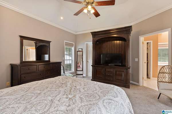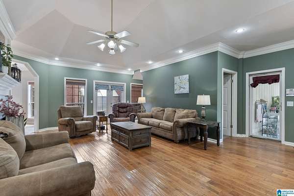 Just MINUTES from I-65 and Lay Lake boat launch, this fully bricked 4BR, 3.5BA home offers TWO master suites and endless room for living, entertaining, and relaxing. Step inside to a welcoming foyer with stairs leading to the upstairs master (built 2021) featuring a clawfoot tub, freestanding faucet, dual-head tiled shower, walk-in closets, and private toilet room. The downstairs master boasts soaring vaulted ceilings, French doors to a fairytale-style Rapunzel deck, wrap-around closet, dual vanities, jetted tub, tiled shower, and water closet. The living room impresses with vaulted ceilings, natural light, and French doors opening to the deck and greenhouse. Two spacious guest rooms share a remodeled bath, with one offering screened porch and hot tub access. The finished basement includes office, laundry, workshop, and covered patio. Outside, host gatherings under the gazebo with toilet, sink, and shower, or enjoy the sparkling pool framed by tropical landscaping and fruit trees.