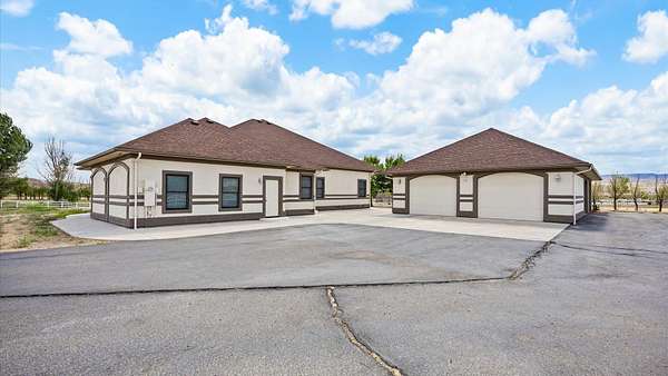 Est $6,237/moThe immaculate 3,680 sq. ft. ranch style home sits over 7 acres with excellent water rights. Complete with 3 large bedrooms and 4th office or bedroom potential with an en-suite 3/4 bath that just needs a door. Envision looking over the green pastures you'll appreciate both desert and mountain views. This home has an excellent spot to install a pool off of the rear covered patio. No expense was spared on the elegant finishes and quality construction. The 4 detached garage has plenty of storage and workshop area with 4 separate overhead doors perfect for separating your vehicles from your toys or tractors. Schedule your private showing today!