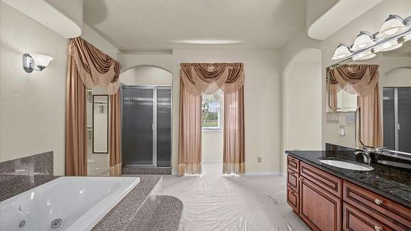- Ceiling Fans, Intercom, Jetted Tub, Main Level Primary, Separate Formal Dining Room, Sound System, Vaulted Ceilings, Walk In Closets, Walk In Shower, Window Treatments, Wired For Sound