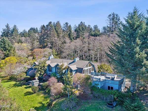 Set above the Pacific with sweeping panoramic ocean views, this remarkable Neskowin estate offers a rare combination of privacy, acreage and custom craftsmanship. Sp0anning approximately 16.32 acres, the property unfolds as a private coastal sanctuary of forested spruce, open meadows, alder groves and thoughtfully designed grounds the custom home offers over 5,400 square feet of living space with 6 bedrooms and 4 bathrooms, vaulted cathedral ceilings rising up to 26 feet, multiple floor to ceiling fireplaces and expansive windows create dramatic interior spaces while framing the surroundings ocean and landscape views. The gourmet kitchen features copper finishes and high-end materials, ideal for both everyday living and entertaining. Main level living includes the primary suite with ensuite bath, walk in closets, living and dining areas, laundry and guest bath. The lower level provides additional bedrooms, full baths, a large great room and flexible spaces suitable for creative studios, wellness use or guest accommodations. The grounds include an over 800 square foot caretaker cottage, a 4-stall barn with tack room and hay loft, fenced pastures and a peaceful pond fed by Kiwanda Creek that attracts abundant wildlife. A large deck captures the ocean views and provides a natural gathering place to enjoy the setting. Zoning allows for additional development, equestrian use or ranching opportunities, with prior approvals indicating subdivision potential. Neskowin Beach is approximately one mile away offering access to some of the most dramatic coastlines in the Northwest. This is a rare opportunity to town a private coastal estate that blends natural beauty, scale and versatility in one of Oregon's most sought-after seaside settings.