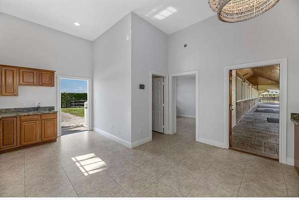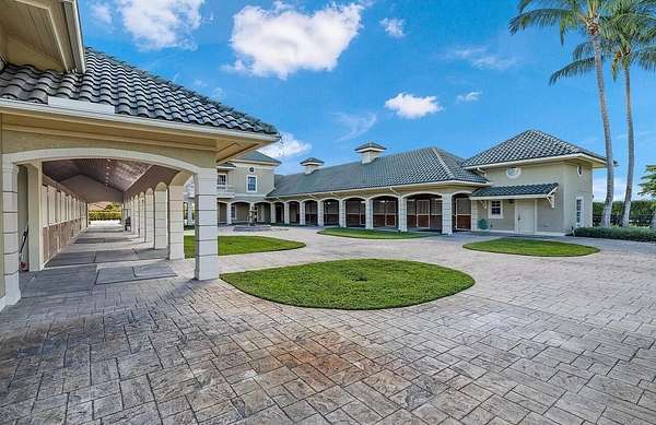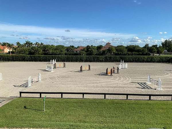 Incredible offering just 0.5 mile to WEF South Gate! Scooter or Golfcart to the showgrounds in under a minute and enjoy the tree lined effortless hack!! This gorgeous facility has an amazing all weather ring 150'x230 & is one of largest in the area! New GGT footing laser leveled by Wordley Martin, New Wordley Martin drag, new John Deere tractor ready for you! Property has 8 lush paddocks (2 mini paddocks), lunge ring & full set of 18 jumps to exceed your potential. There are 2 tack rooms w/ AC, rider's lounge, and a beautiful new covered gazebo w/ fan, lights, speakers, new flyspray sys throughout barns! Elegant matching pole barn & 1 apt avail for season! Owner has inclusive, kind, professional environment. Yourself and your horses will be very happy here.