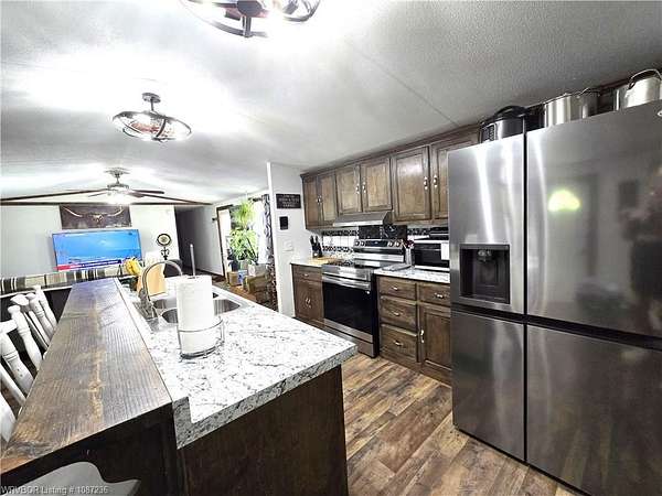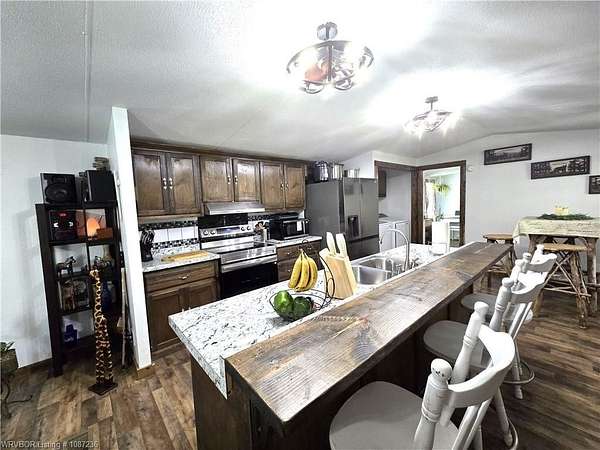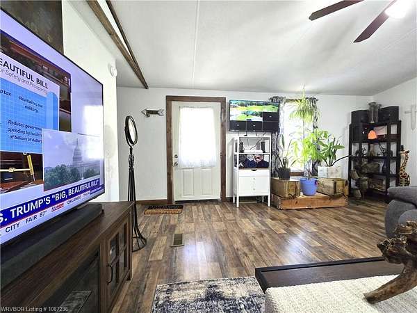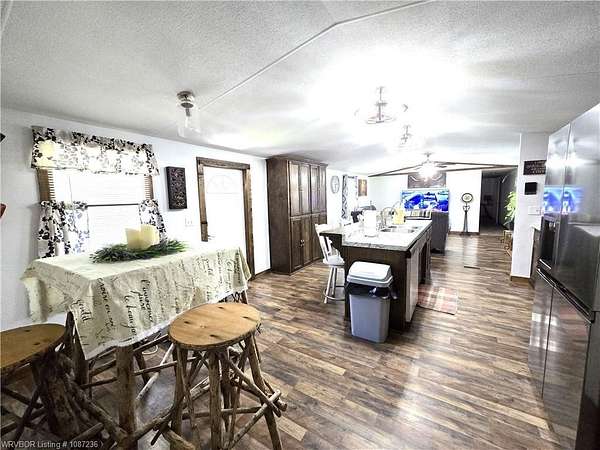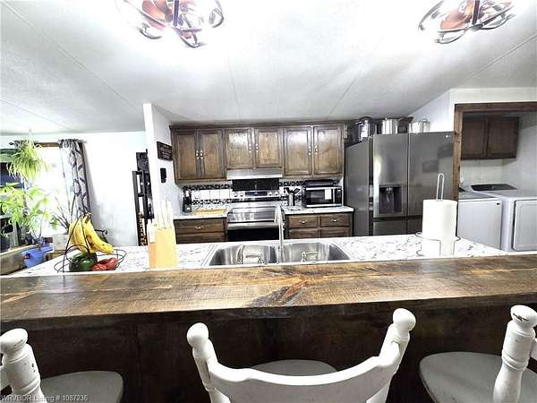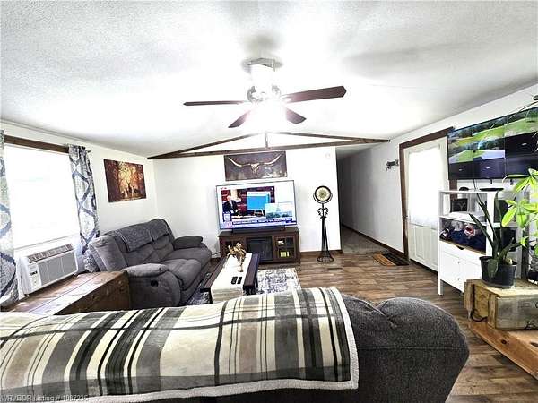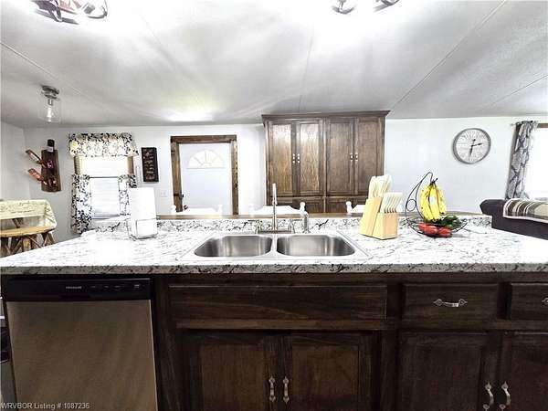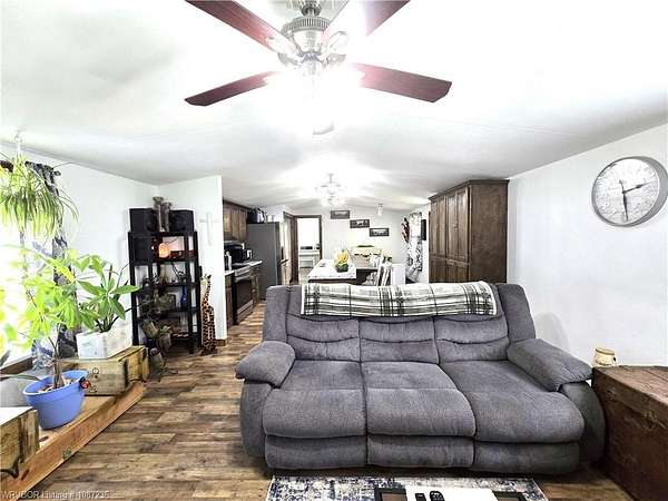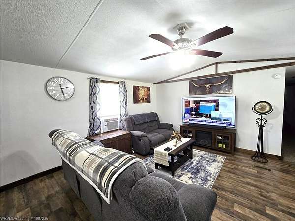 MOTIVATED SELLER! This home has been inspected and certified by a licensed engineer as meeting all HUD requirements. As a result, it qualifies for both conventional and FHA financing, providing added flexibility and accessibility for prospective buyers. Welcome to this well-maintained 3-bedroom, 2-bath single-wide home on nearly 2 acres near Kerr Reservoir, with a nearby boat ramp. This property offers the perfect blend of seclusion and access to town and lake life. Included is a detached two car carport with a built-in storage unit, featuring a wide roll-up door on the backside. This home was updated in 2021 with a new metal roof and kitchen cabinets. New laminate flooring was installed in January 2026. The open-concept design showcases a kitchen island equipped with a sink, dishwasher, and bar top for additional seating. You'll find newer stainless-steel appliances, including a Frigidaire dishwasher, LG refrigerator with in-door ice and water, and a Samsung 5-burner Wi-Fi-enabled convection oven with built-in air fryer. The laundry area is equipped with all necessary hookups. The kitchen is further enhanced with two caged ceiling fan lights for added comfort. Step onto the covered back porch that overlooks a fully fenced area, making it ideal for children and pets. A spacious lower deck includes a utility shed with LED lighting, multiple electrical outlets, and a GFCI-protected outdoor outlet for added convenience. The tranquil fire pit area, complete with a cooking grate, is perfect for entertaining or relaxing. With 345' of frontage and a depth of 247.18' (M/L), there is room for expansion! This property features a well-maintained aerobic septic system and has central heat and air. For your internet needs, high speed internet is available with Cookson Hills Connect. Experience country living while being close to town and just 26 miles from Fort Smith, Arkansas!