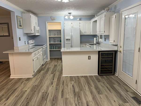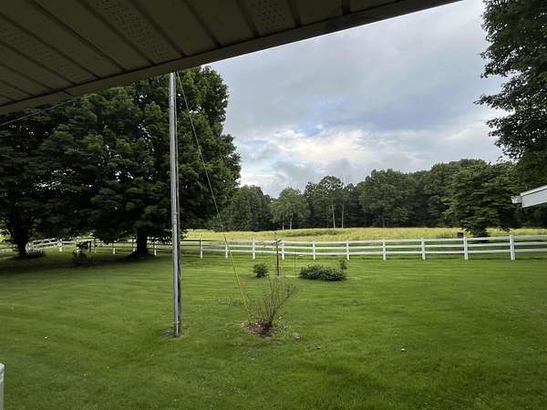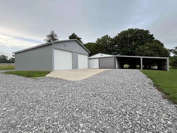Nature lovers paradise - Newly remodeled home, mature shade, apple & pear trees, stocked pond & lake, 3 POLE BARNS, 1200' road frontage with white vinyl split rail fencing. All of this on 18 acres, conveniently located on Hwy 41A N, only 20 minutes from Henderson, Madisonville or Morganfield. 2490 sq ft home has 3 bedrooms, 2 baths, family room, living room, large laundry room, mud room AND a SAFE ROOM, should you need shelter from storms. Enjoy peace & quiet from the spacious front porch, rear deck and patio. Roof, new flooring and interior paint 2025. Attached carport is 13x25.5. Refrigerator, range, microwave, dishwasher, wine fridge, picnic table, 2 large propane tanks for the fireplace, 60 gal air compressor, large kennel on concrete pad all included in the sale. Compressed air is piped to all 3 pole barns- 30x40 w/12' ceilings (the BRAND NEW Certified Automotive lift may be purchased separately for $5,000), 24x40 and 24x40 w/15x40 & 12x24 lean to. If you are a hunter @ heart - then you will love the wooded area loaded with deer and turkey. If it's space for livestock you need- this place has that, too! If fishing is your passion, you will love the stocked lake & pond. The 18 acres consist of 16 acres on deed with the house & pole barns + 2 acre tract on separate deed. All to be sold together. One Year Home Warranty is being offered for Buyer's peace of mind.