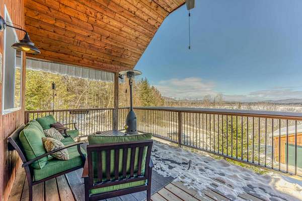 Set on 12.8 private acres, this property captures sweeping views across hundreds of acres of lush Connecticut River Valley farmland, with the majestic Pilot and Pliny Ranges rising in the distance. The lower-level features a spacious mudroom, a beautifully updated kitchen and comfortable dining room, a reading nook, along with a full bath with soaking tub, shower, and laundry. Upstairs, the living room and bedrooms open onto a grand porch overlooking breathtaking Kilkenny views. The home is kept nice and warm with radiant heat on both floors, as well as a pellet stove on the first floor and wood stove on the second. Outdoor enthusiasts will appreciate the private trail that connects directly to the VAST snowmobile network. Additional amenities include an 18' x 32' barn for storage or bunkhouse potential, as well as a 24' x 32' three-bay garage perfect for vehicles, recreational toys, tools, a workshop, or extra hobby space.
