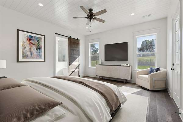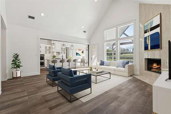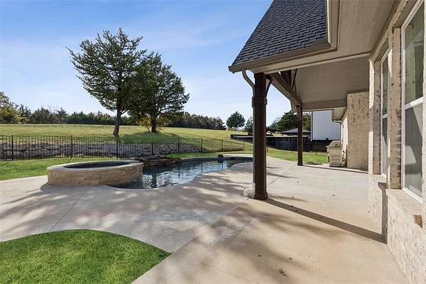 Experience the perfect blend of luxury, privacy, and comfort in this exceptional residence, gracefully set on 1.79 wooded acres within the highly sought-after gated Waterstone Estates community in McKinney ISD. This elegant 4-bedroom, 3.5-bath home offers the rare convenience of all bedrooms located on the main level, ideal for seamless everyday living. Framed by mature trees and lush landscaping, the home welcomes you with a grand entryway featuring designer lighting, rich wainscoting, and timeless architectural details that set the tone for refined living. A private study just off the foyer provides an inspiring space for working. The expansive great room impresses with its floor-to-ceiling fireplace, soaring ceilings, custom built-ins, and gleaming hardwood floors, all flowing effortlessly into the gourmet kitchen, perfect for family connection and entertaining. Chef’s kitchen is a masterpiece, boasting a built-in stainless-steel refrigerator, gas cooktop, double ovens, glass-inset cabinetry, and a striking island. The thoughtfully designed layout includes a versatile playroom or media area for the family to enjoy, while upstairs you’ll find a spacious and private game room. Your primary suite is a sanctuary of tranquility, featuring a spa-inspired ensuite with barn-door entry, a freestanding soaking tub, separate shower, dual vanities, and a custom-designed walk-in closet. Three additional guest bedrooms are all nicely sized. Step outside to your resort-style backyard oasis, a covered patio with an outdoor fireplace overlooks the sprawling lawn, ideal for entertaining or quiet evenings under the stars. The heated, in-ground pool and spa elevate this space to a true luxury escape. Additional highlights include a three-car garage, extensive storage, and the serenity of living on nearly two acres of a beautifully treed lot.
