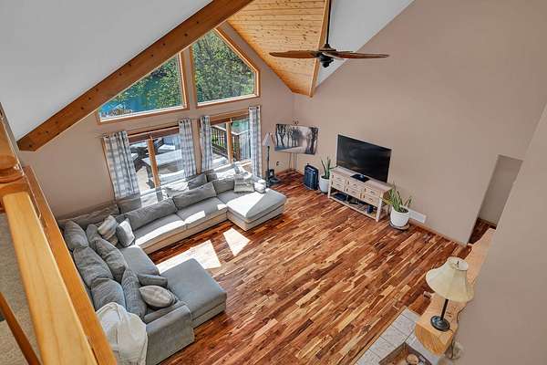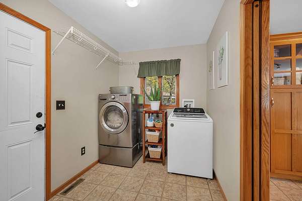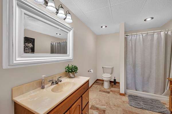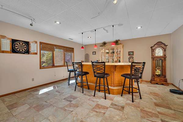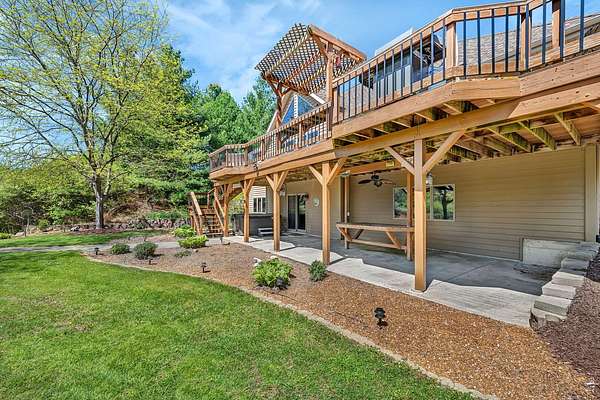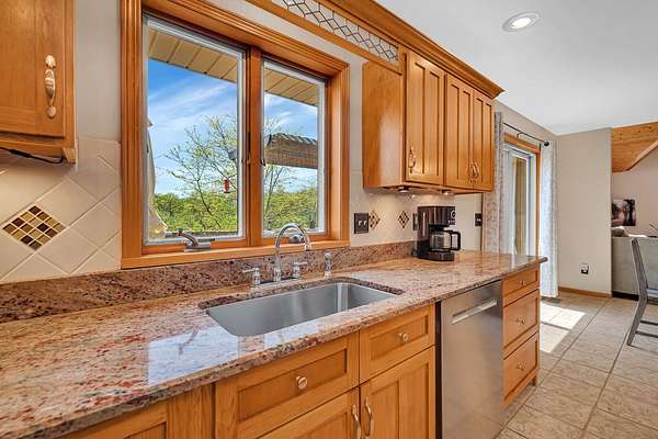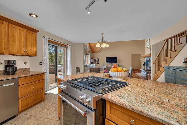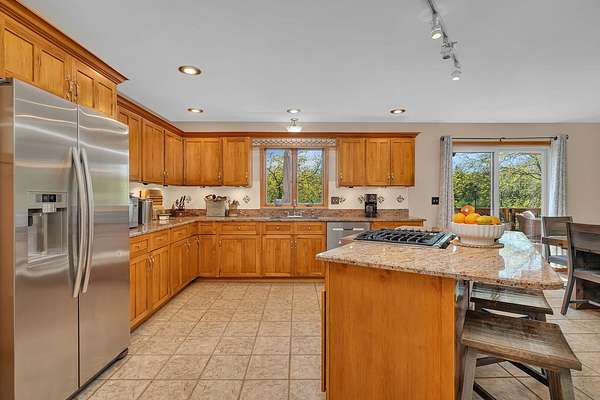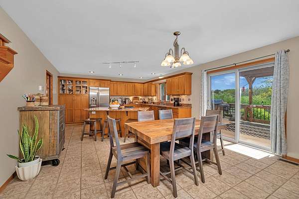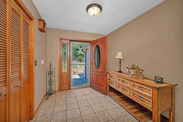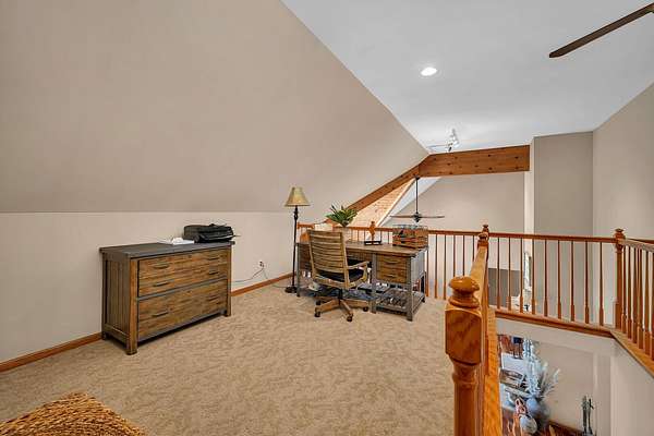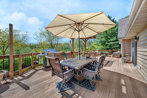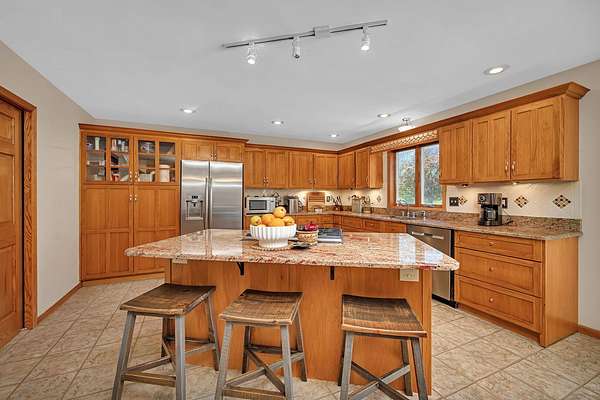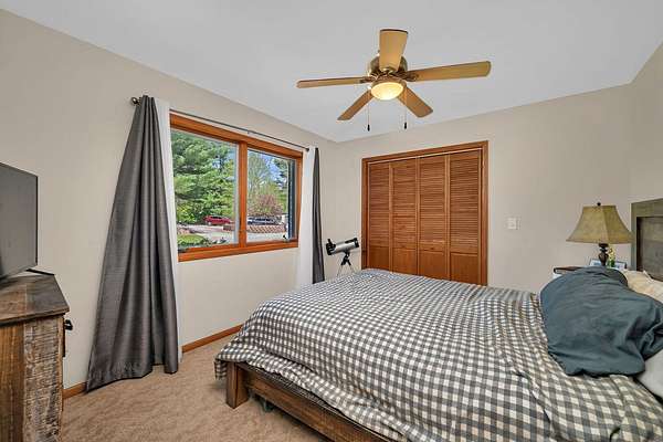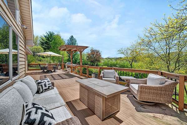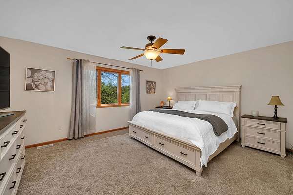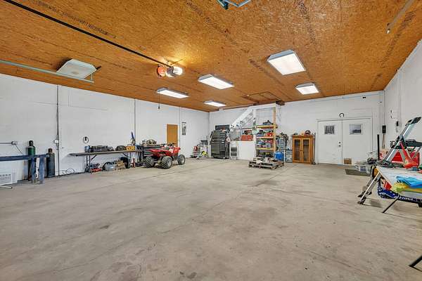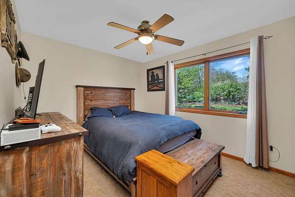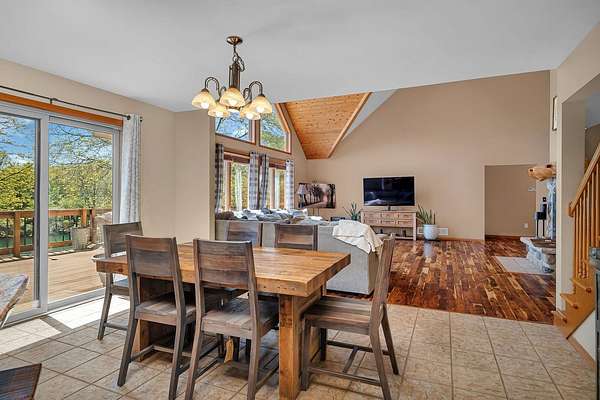 Discover the perfect blend of privacy, natural beauty, and exceptional living space in this 4bedroom, 3.5 bath story and a half home set on 8.22 breathtaking acres on picturesque Deer Lake. A treelined driveway welcomes you and immediately sets the tone for the serene setting that surrounds the property. Step into the foyer and feel the warmth of home. The oversized family room is a true showstopper-vaulted ceilings, a woodburning fireplace, and floor to ceiling windows frame stunning lake views that can be enjoyed year round. The spacious dining area flows seamlessly into a well appointed kitchen featuring custom cabinetry, granite countertops, stainless steel appliances, a large pantry, and a center island-ideal for entertaining or everyday living. A convenient main floor laundry room adds to the ease of the layout. The main floor primary suite includes a full attached bath and walk in closet. Two additional generously sized bedrooms and a guest bath complete the main level. Upstairs, an expansive 500+ sq ft loft offers endless possibilities-office, den, playroom, or creative studio. The finished walkout basement is designed for fun and relaxation. Enjoy the bar, with wine refrigerator, recreation room, theatre room with projector, a bedroom, full bath, and ample storage. Radiant heat has been installed throughout the main and lower levels-just awaiting connection to a dedicated water heater. 2 car attached garage adds space for your vehicles and more storage. Step outside to the covered patio or head up to the impressive 50' x 15' composite deck overlooking the lake. Outdoors, the magic continues. Gather around the stone firepit with built in seating, or head down to your private beach with a wide shoreline and boat dock. Deer Lake is a peaceful, no wake, approx. 70acre lake with depths up to 35 feet-perfect for swimming, fishing, canoeing, or enjoying a quiet pontoon ride. The land is enriched with peach, apple, and cherry trees, blueberry bushes, and an oversized vegetable garden. The entire property is irrigated and includes a whole house Generac generator for peace of mind. For hobbyists, collectors, or those needing serious storage, the outbuildings are unmatched: Two steel pole barns with heat, A/C, and concrete floors includes a storage shop with woodburning furnace and a lean-to cold storage building with two rollup doors and a half bath as well as a 13' x 10' shed. This is the dream home and setting you've been waiting for. Don't let this rare opportunity pass you by-schedule your private viewing today.