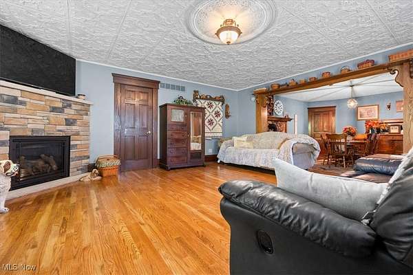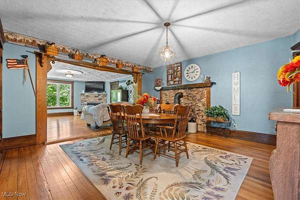This beautiful, 4 bedroom, 2 full & 2 half bath home was built in the 1900s and modernized over the last 32 years by the current owner, offers quality and craftsmanship, complete 1st floor living, is situated on nearly 5 beautiful and private acres, minutes from Lowell...offering easy access to Marietta or North towards Beverly...a perfect mixture of privacy, comfort and convenience. A covered front porch welcomes you home and into a nice size living room with bay window and decorative fireplace, the grand sized dining room has enough space for a large table, features a beautiful built-in wall hutch, stone wall around the decorative wood stove, hardwood flooring and is open to the huge, light and airy family room with corner fireplace and French doors to the backyard....would also make a beautiful patio area for outdoor grilling or entertaining. A half bath is conveniently located off the family room. The cozy eat-in kitchen features abundance of custom Oak cabinetry, Quartz countertops, tile backsplash, farmhouse sink, coffee bar area, newer flooring, table space and door to front porch for sipping your morning coffee. Located off the kitchen is a large mud room, private laundry room with half bath having large tiled shower and door from the garage. The main floor is complete with a grand sized, private master's suite featuring decorative fireplace, room for a king-sized bed, massive full bath with shower, soaking tub, tile floor and walk in closet. Upstairs you will find 3 large bedrooms with good closet space, a craft room or home office and a full bath with clawfoot tub. The basement can be accessed off the kitchen or a private entrance at the rear of the house and provides great storage or makes a nice room or hobby room.