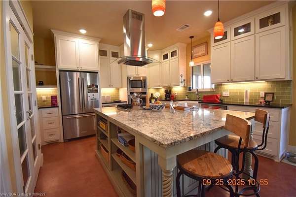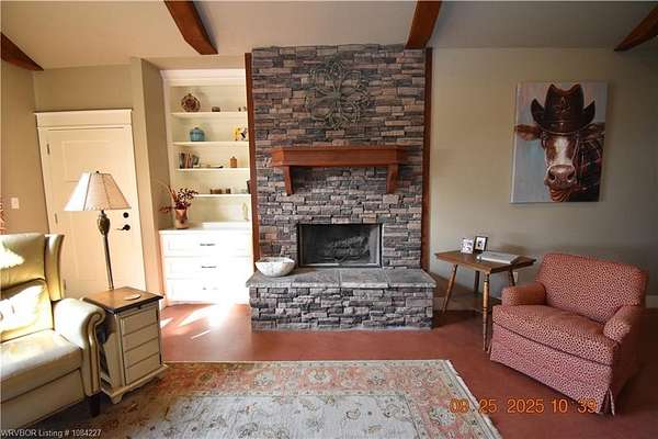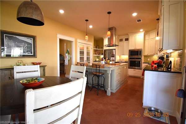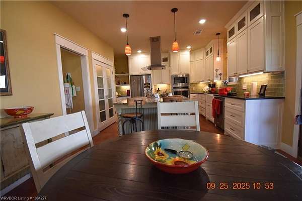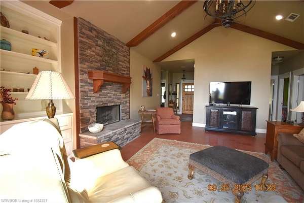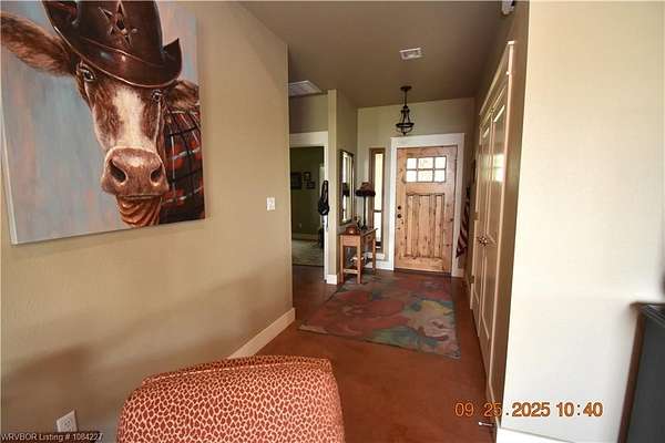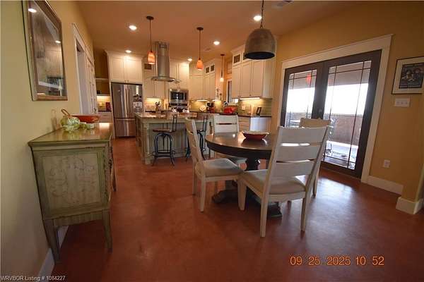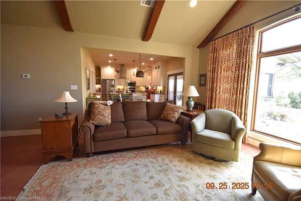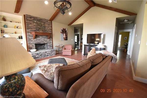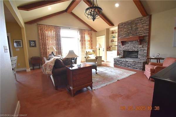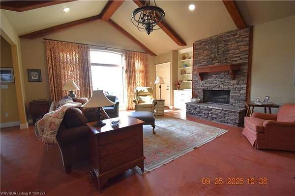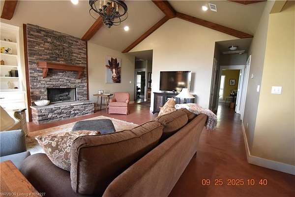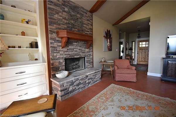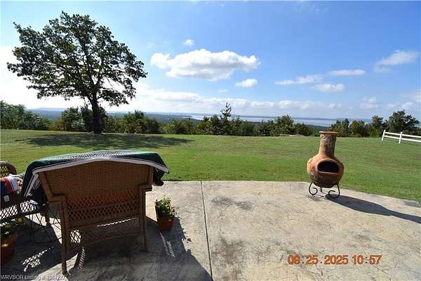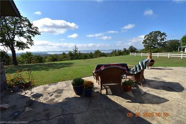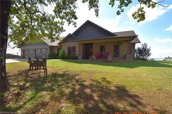 Million Dollar Lake View!!! Custom built, 2500 Sq ft. with 4 bedroom & 2 full bath. This stunning home features huge windows overlooking Kerr Lake on the Great Arkansas River! Gourmet kitchen, Stained concrete flooring, stone fireplace. The 4th bedroom could be used as an office. You will enjoy the screened in patio plus a large outside stone patio. Also includes 850 ft garage, Plenty of room for your cars and boat. Outbuilding and fenced in dog run. This home sits on 5 'Park Like' acres, and best of all the million dollar view is "Free". Call today for your private showing.