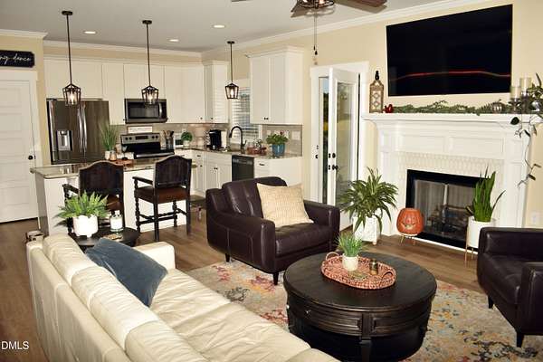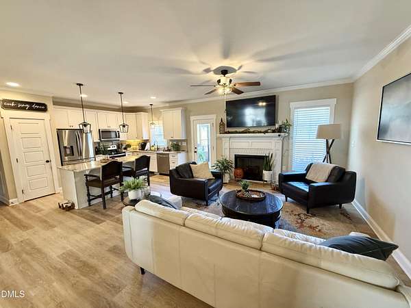 Here is a chance to own a Beautiful custom home in one of the fastest growing area but with NO HOA, NO CITY TAXES, NO WATER BILL!. Sit out back in your screen porch and enjoy the county! This plan offer a ranch style with all the Bedroom on one level but has a Bonus/ upstairs Flex with a full bath! that could be use as a private office or workout rm. This plan also features a large walk-in attic space (17 x 11 area) Great open floorplan with Custom cabinets and Granite countertops and a beautiful island in the Kitchen! Luxury Vinyl floors throughout Living area including Main Bedroom. Carpet other Bedrooms & Bonus. Tile floors in Baths. refrigerator, washer & dryer, Outdoor Garden boxes, and with an acceptable offer seller will convey the Huskvarna Zero turn Mower.