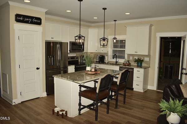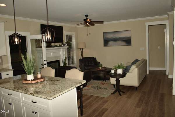 - Ceiling Fan(s), Granite Counters, Kitchen Island, Smooth Ceilings