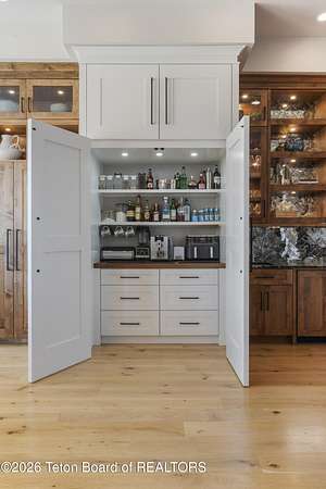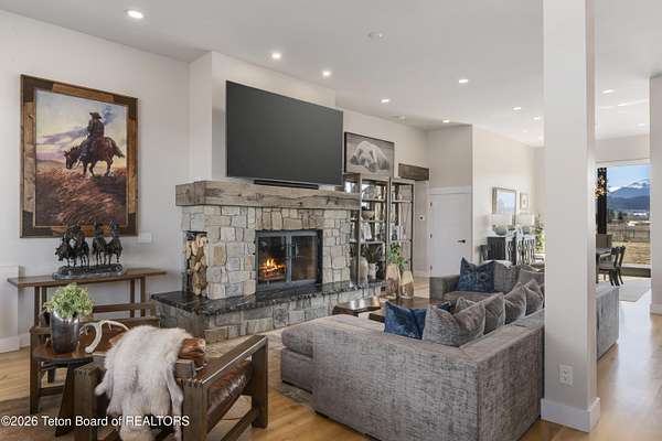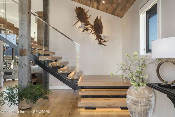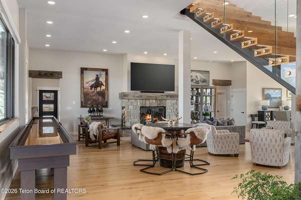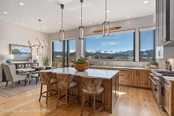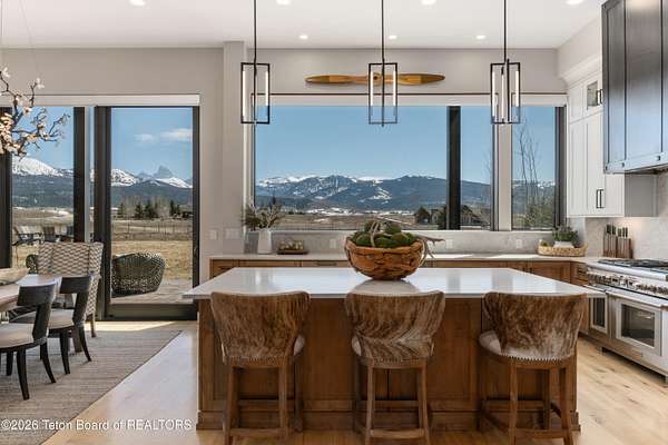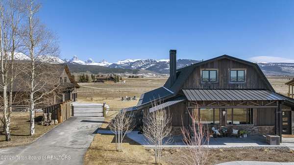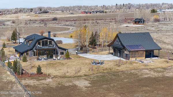 Completely reimagined from 2023-2024, this iconic Teton Valley home has been transformed into a world-class 5 bed /4 bath Teton retreat. While the exterior honors its historic roots, the interior is a masterclass in high-end craftsmanship. Situated on 2.5 fenced acres with unrivaled Teton views, the estate features a grand open floor plan, a private guest house, a trout-stocked pond, a dry sauna and hot tub. From the year-round greenhouse to the magnificent wood-burning fireplace, every inch is designed for the ultimate luxury lifestyle. The renovation, completed to exacting standards of modern luxury, ensured the windows serve as frames for the 4-peak view of the Grand Tetons. In addition to the Great Room, which is warmly appointed and comfortable for entertaining with a sophisticated. wet bar, the main floor also offers two elegant bedrooms and bathrooms. The upper level hosts the master suite, a private sanctuary designed to capture the first light hitting the mountain peaks, as well as two guest rooms and a bathroom. A hidden gem of this property is the 1-bedroom, 1 bath guest apartment providing ultimate privacy for visitors above an expansive garage with plenty of storage and room for your private gym. Make this dream property yours today!