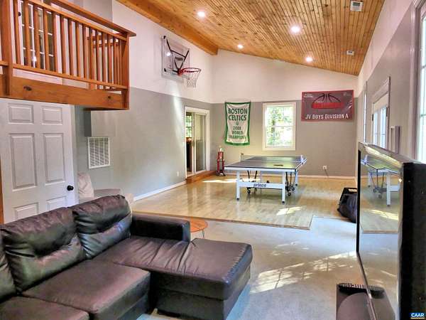 If you need more space in your household, come on out just a short drive east of town to this spectacular home with over 4,100 square feet of finished living area! We have TRUE hardwood custom maple flooring on the main level- in the Kitchen, Great Room and Dining room areas. There is a bedroom addition upstairs also with full hardwood maple floors. But get ready to excite any hoop dreamers in your house! We have a 36 x 15 Rec room complete with basketball practice area. Really! The primary bedroom suite is big enough for ANY size bed and furnishings. Set up your media room (off the basketball practice area) for whatever team decor you like. Outside you have big entertainment areas with decks on 2 levels overlooking your completely private 1.76 acre lot. Very peaceful, very private plus 2 BIG storage sheds and garden area. 7 minutes from groceries, restaurants and retail!