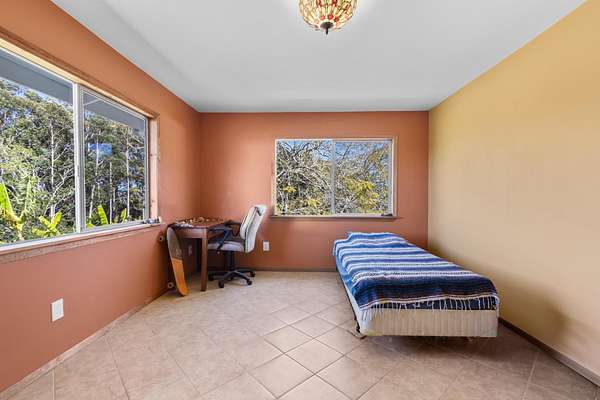Welcome to Ahualoa Homesteads - a quiet part of the island that feels peaceful the moment you arrive. Just a short drive from Historic Honokaa Town, this 5-acre property offers space to breathe & land that's enjoyable to walk. The grounds have a park-like feel, w/ rolling hills & cleared paths, all set against the backdrop of Mauna Kea. A seasonal creek runs along one side of the property, while the other sides border pastures w/ grazing animals. Around the yard you'll find avocado trees, an orange tree heavy w/ fruit, bananas, coffee ready to pick (the sellers harvest & roast their own), native hardwoods like ohia & koa, jacaranda, + a well-kept chicken coop w/ egg-laying hens. The home was well thought out, well built, & well maintained. Tall ceilings & big windows bring in natural light, & the house sits up off the ground, creating useful storage underneath. Laundry utilities are inside & close to the bedrooms, & there is a coat closet/pantry near the front entry. All three bedrooms are nicely sized, w/ the primary suite at the end of the hall. Porches on 3 sides of the home, including a large covered back porch overlooking the yard - a great place to relax w/ your morning coffee & take in the views. The home is equipped w/ solar to keep utility bills low, a large water tank for your water needs, & fiber-optic internet to keep you connected - everything needed for simple living. Attached by a covered breezeway is an additional structure. The garage is on the lower level w/ room to park two vehicles. Upstairs is a cozy, recently finished guest space featuring a kitchenette, dining area, living space, two bedrooms, & a bathroom. It's a great area for guests, hobbies, a caretaker, or a workspace. If you're looking for a peaceful place w/ privacy, a solid home w/ flexible guest quarters, & the potential for a hobby-farming lifestyle, come take a look. It's easy to appreciate the moment you step onto the land.