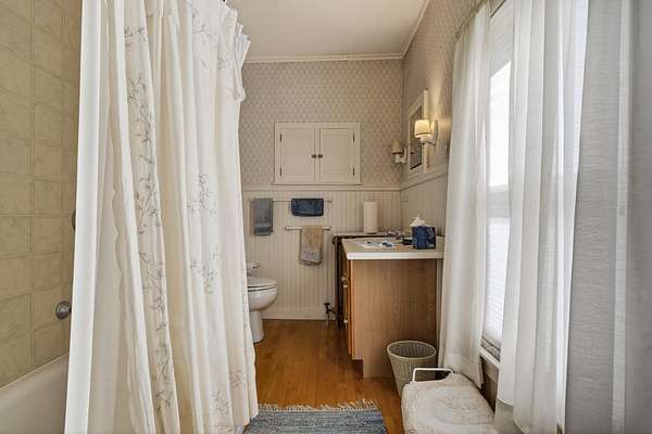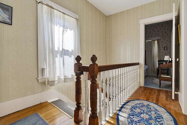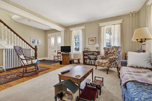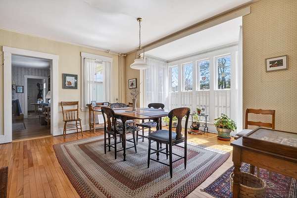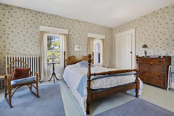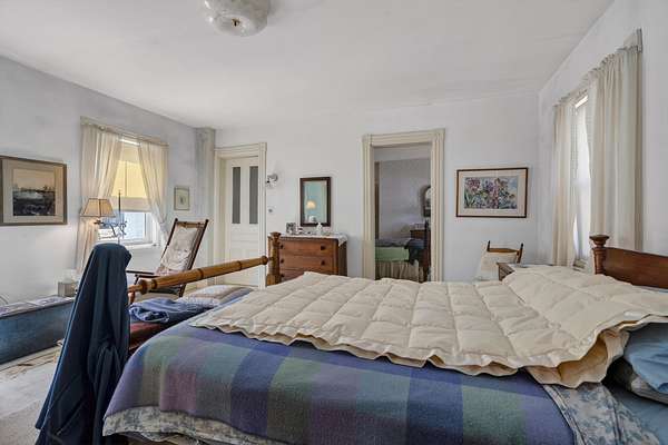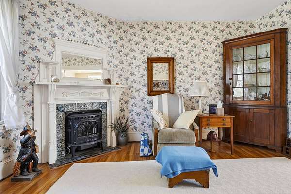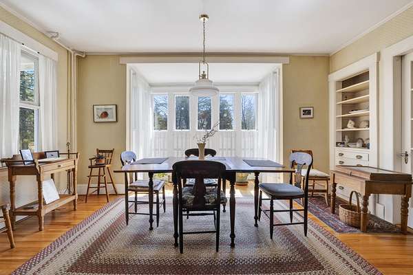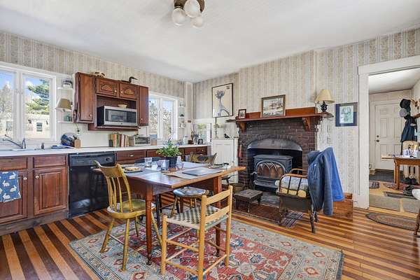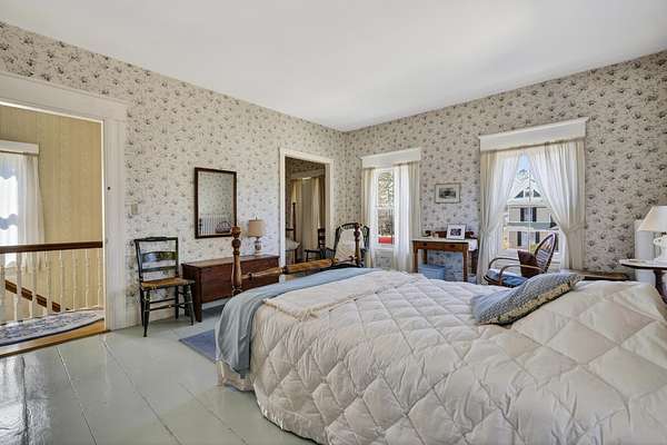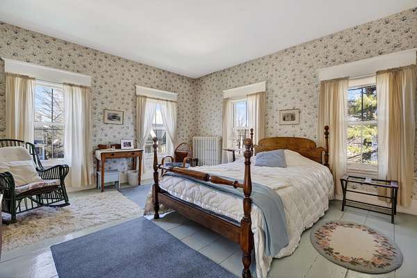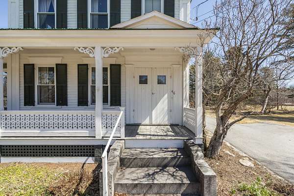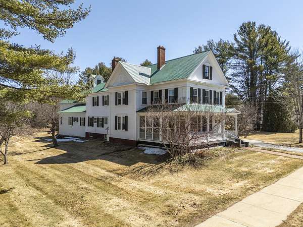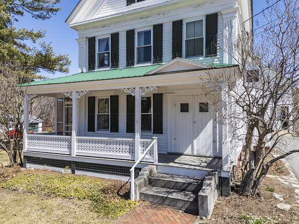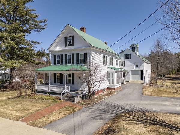 Charming Bethel Home in the Heart of the Historic District Step into timeless charm at 46 Broad Street, Bethel, a beautifully maintained home that blends classic character with modern comforts. Featuring 4 bedrooms and 2 full baths and stunning hardwood floors throughout, this home welcomes you with warmth and style. Relax on two inviting porches, one facing south and one north, or gather in the cozy kitchen by the wood-burning stove. The first floor also offers a sitting room/den with propane stove, a lovely dining room, living room, office, laundry room, and full bath--perfect for family living or entertaining. An elegant stairway leads to the second floor, home to 4 bedrooms, a full bath, and an additional room currently used as an office, with a convenient back stairway connecting to the main floor. The oversized attached barn is sturdy and versatile, ideal for storage or projects. The house has been thoughtfully updated with blown-in insulation, numerous new windows, and a rebuilt boiler, ensuring comfort and efficiency year-round. Set on 6.2 acres of beautifully landscaped grounds with mature plantings and perennials, outdoor living is a delight. A fenced-in blueberry patch offers fresh berries for every season. Located in Bethel's Historic District, this home is just 10 minutes to Sunday River Ski Resort and walking distance to the Bethel Inn Resort, with all downtown amenities close by. With its classic details, inviting spaces, and serene setting, this is truly one of Bethel's finest homes--a rare opportunity not to be missed!