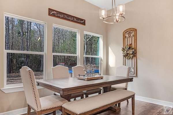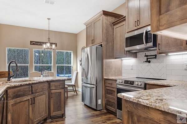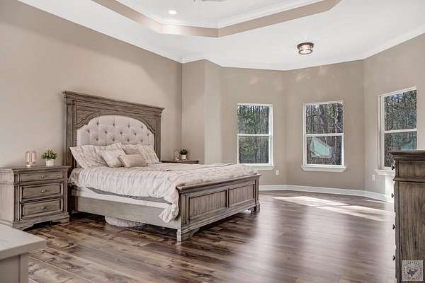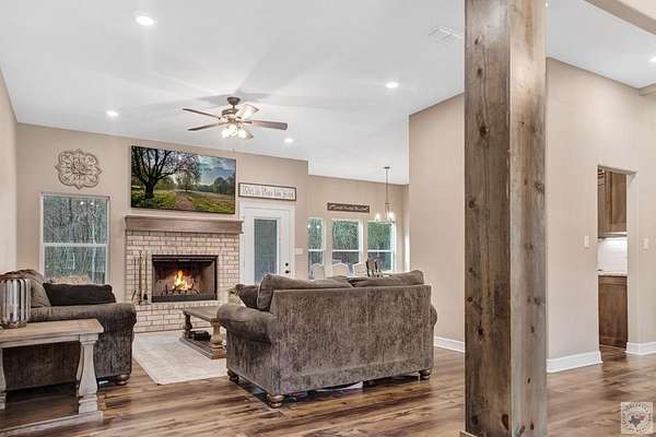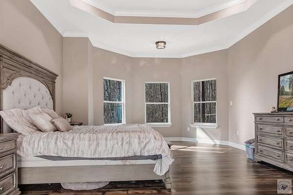 Welcome to this stunning 2024 new construction home nestled on 2 beautiful acres in the quiet countryside of Atlanta, Texas. This thoughtfully designed 3-bedroom, 2.5-bath home offers the perfect blend of modern comfort, privacy, and functionality, complete with a peaceful pond that adds to the property's charm and serenity. Step inside to a well-planned, open layout that flows effortlessly, ideal for both everyday living and entertaining. The split-bedroom floor plan provides privacy for the spacious secondary bedrooms while showcasing an impressive primary suite tucked away for relaxation. The large master retreat features a gorgeous bay window overlooking the property, abundant natural light, and plenty of room for a sitting area. The ensuite bath offers a spa-like feel with a tiled walk in shower and separate bath tub, and a walk-in closet designed for convenience. Outside, enjoy room to roam, garden, or simply unwind by the pond, with plenty of space for outdoor living, a shop, or future expansion. Whether you're seeking peaceful country living or a newer home with land just outside town, this property offers a rare combination of new construction, acreage, and timeless appeal. This is a must-see home with space, style, and setting you'll love.