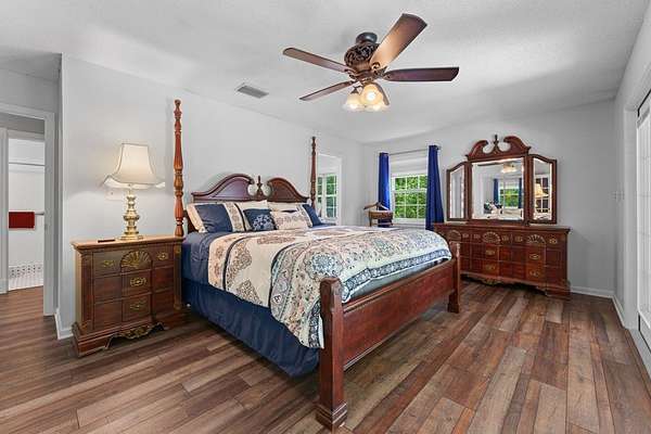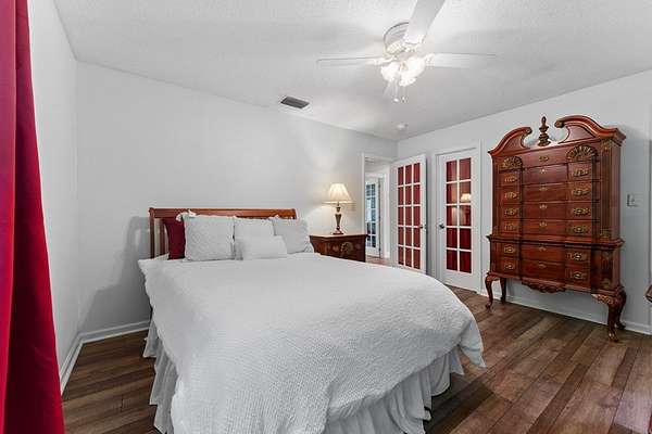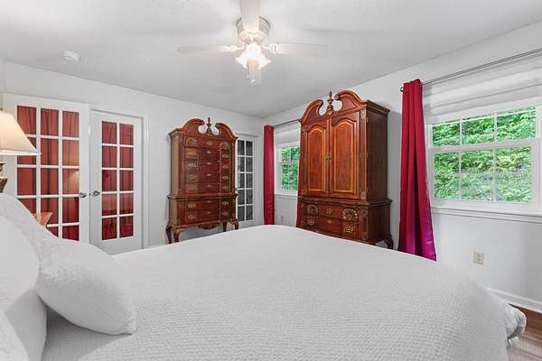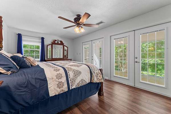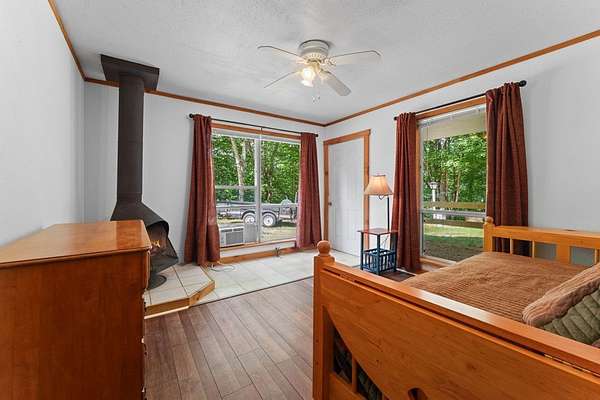Don't miss this charming 2 bedroom, 3 bathroom home offering convenient main level living in a peaceful and private setting. The spacious primary bedroom boasts an en suite bathroom that offers double vanities, generous space, and an abundance of natural light, creating a bright and welcoming retreat. A generous flex/family room provides versatile space that can be used for entertaining, a home office, or a recreation area. The detached 2-car garage offers excellent storage and parking, and also includes an in-law suite with its own private bathroom, perfect for guests or extended family. Outdoor living is a highlight with a screened-in porch that is ideal for enjoying crisp mornings or relaxing late into the evening. An RV hook-up with electric is already in place at the bottom on the property, adding ease for travelers or visitors. This home is being offered partially furnished, adding convenience for the next owner. With thoughtful design, comfortable living spaces, and flexible options, this property is well-suited for a variety of needs while still providing the quiet surroundings and privacy so many buyers are looking for today.