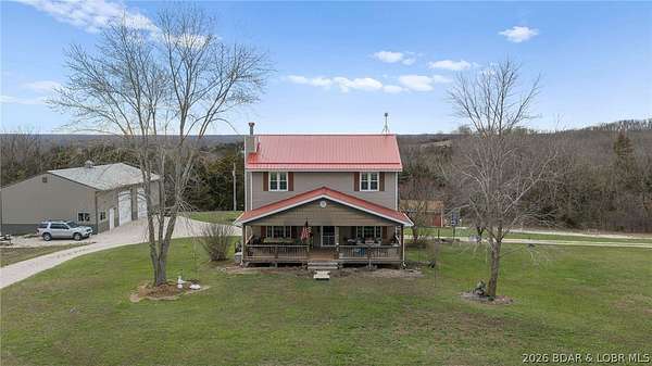 Escape to the quiet beauty of this classic Colonial style farmhouse set on 4 partially wooded acres. Blending timeless architecture with modern comforts, this 3 bedroom, 3 bath home offers spacious living, ample storage space, a full walk-out basement, & beautiful views in every direction. Enjoy relaxed mornings with a book and coffee on the covered front porch swing and peaceful evenings on the covered or open back deck, both perfect for taking in the scenic countryside. Built in 2020, the property features an expansive detached 32 x 56 shop with two 12 x 12 garage doors, a large storage loft accessible by lift, 200 amp electric & water. Also on the property is an additional 12 x 20 workshop with 100 amp electric, an attached 6 x 12 greenhouse and raised beds for year round gardening. A full RV hook-up with 30/50 amp electric and a dedicated drive grace the property. Conveniently located within easy reach of Jefferson City or the Lake of the Ozarks, this property blends country charm with modern convenience, great for gardening, hobby farming, or simply stretching out and savoring the privacy of the rural life. You have to see this home in person to appreciate its charm & beauty.
