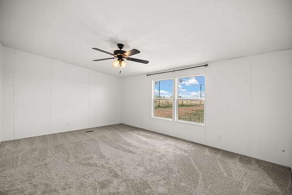 Enjoy peaceful rural living in Moriarty, NM! This spacious 4-bedroom, 2-living area home sits on 2 acres with community water and natural gas. Just 4 years old, the double-wide manufactured home is on a permanent foundation and features brand-new carpet and fresh paint throughout along with refrigerated AC. Room to spread out inside and out -- ready for you to move in and make it your own!