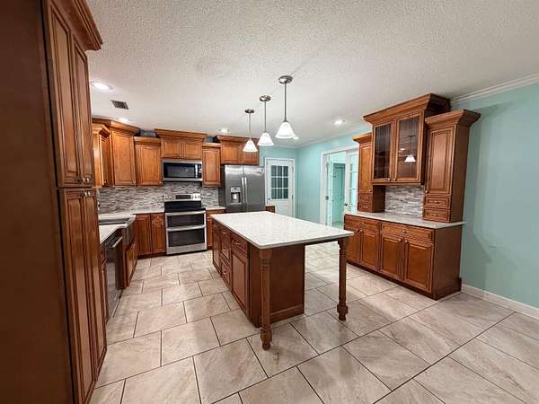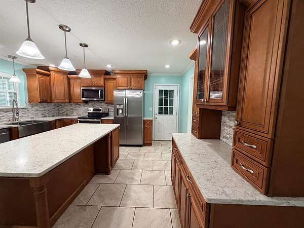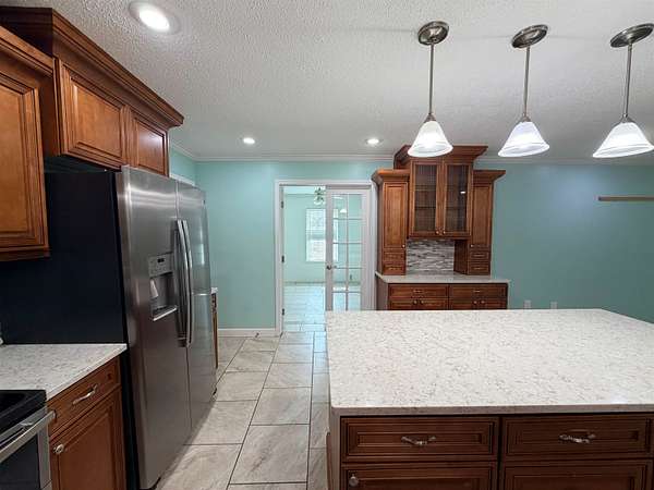 Est $3,775/moRare acreage. Solid construction. Flexible living. Endless potential. Built with 2x6 walls and a full brick overlay (approx. 9" thick), this home was designed to last and offers a flexible layout, including an in-law suite with a private entrance. The land has been thoughtfully cared for, with a garden cultivated for 10 years and mature landscaping and fruit trees (lemon, fig, pomegranate, olive, mulberry, pecan, pear, plum, peach) plus plenty of roses and azaleas. Property features include two separate concrete block buildings (956 SF & 1,626 SF & wired for electric & a/c), a pole barn with two concrete bays, and 18 water spigots with insulated lines.