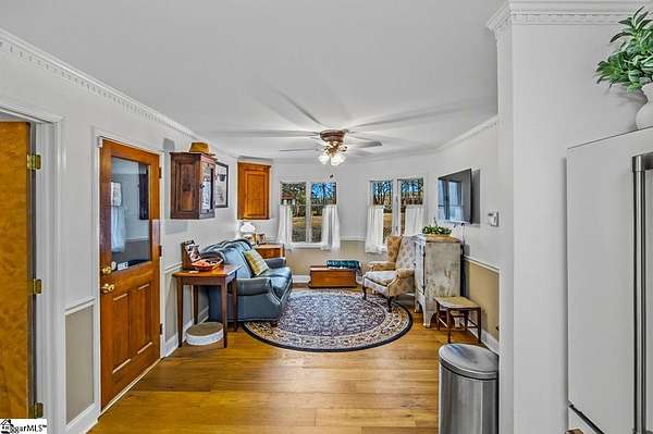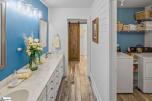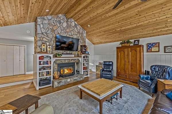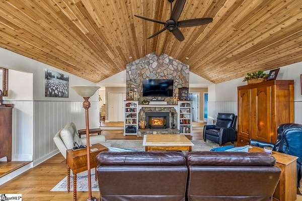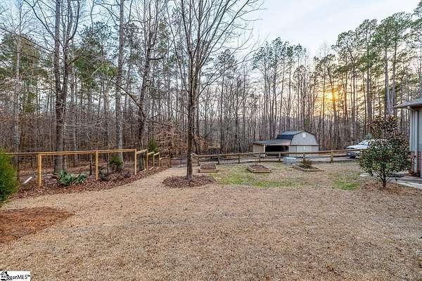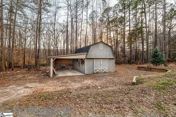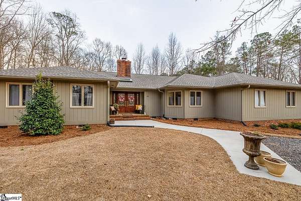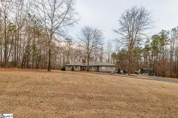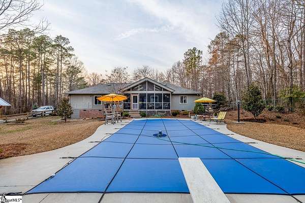 Stop searching and start living! This beautifully renovated Fountain Inn home offers the ultimate unrestricted lifestyle: 4+ acres, a private pool with a cabana, a spacious barn, and the freedom to keep horses—all with zero HOA. Look no further! This home is the perfect blend of privacy and luxury in a stunning one-level ranch, situated on a sprawling 4.02-acre wooded lot in the established Shellstone subdivision. As you step through the front door, you are greeted by new white oak flooring and a striking stone accent wall in the foyer that opens into a massive 525 sq. ft. Great Room. This bright and airy living space serves as the heart of the home, featuring a vaulted tongue-and-groove ceiling with skylights and a cozy wood-burning fireplace. The open-concept design flows seamlessly from the dining room into the spacious kitchen equipped with stainless steel appliances, a pantry, and a breakfast area, perfect for morning coffee while overlooking your private, serene acreage. The split-bedroom design offers maximum privacy, featuring a grand Primary Suite that captures expansive views of your beautiful wooded property. This true retreat includes large windows for ample natural light, dual closets, and a spacious ensuite bath with a walk-in shower and double sinks. Thoughtfully designed for modern living, the laundry room is integrated into the primary suite, providing unparalleled convenience right where you need it most. On the opposite wing, two secondary bedrooms are connected by a Jack-and-Jill bathroom, while a versatile fourth room provides the ideal footprint for a gym, home office, or hobby space. The outdoor amenities of this mini-estate are truly unparalleled for the area. Step outside to a vaulted screened porch that leads to a sparkling in-ground pool, creating a private oasis for summer entertaining. The property also features a poolside cabana, and a 16x20 lofted detached barn—complete with a lean-to for a golf cart—offering endless possibilities as a workshop, creative studio, or equipment storage. Despite the "away from it all" feel of your heavily wooded acreage, you remain just minutes from the shopping and dining of Downtown Fountain Inn. With a two-car side-entry garage, no HOA fees, and a location in the Fountain Inn High School zone, this property is a rare find that combines functional living with resort-style features.