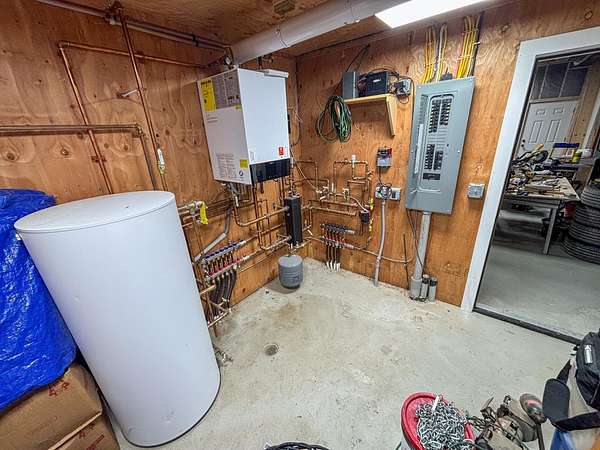 Don't Miss Out on This Unique Opportunity in Thetford, VT! This newly built 2023 property, set on 2.4 acres of level, open land, offers endless possibilities. Perfect for gardening, outdoor activities, and entertaining. You'll enjoy BBQs in the summer and building snowmen in winter, with sunny exposure throughout the day. At its heart is a 2-car garage with radiant floor heating and a beautifully finished 1-bedroom, 1-bathroom apartment above. The apartment features an open layout with a wood pellet stove for efficient heating. Need more space? The layout can accommodate an additional room by dividing the office/living area. This property also boasts expansion potential. The garage includes a plumbed, wired, and sheetrocked 3/4 bathroom, ready to finish. Attached is a 20' x 30' poured concrete foundation slab, ideal for a future 2-bedroom home with a loft. Radiant heat is pre-installed in the slab, making it easy to build and integrate with the apartment, whether as a guest suite or rental income. Conveniently located near Interstate 91, this home is a short drive to Dartmouth College, Dartmouth Health, and all Upper Valley amenities. Lyme, NH, is just minutes away. With nearly every aspect of the property built in 2023, it's move-in ready and waiting for your vision. This gem won't last long--schedule your showing today!