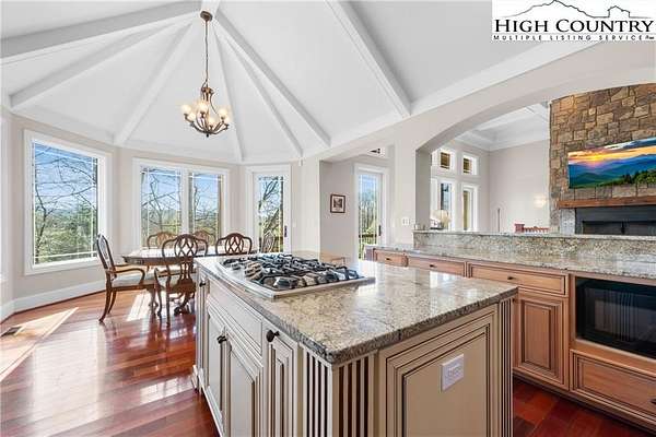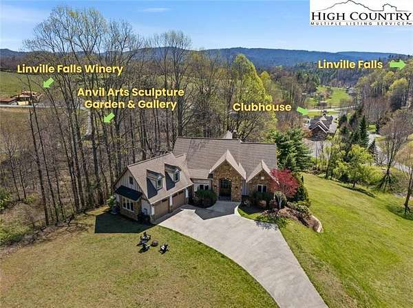 Welcome to this mountain retreat in Linville Falls Estates, set on three beautifully landscaped lots just across from Linville Falls Winery. Offered fully furnished and move-in ready, this home includes over 4,200 square feet with two distinct living areas, four bedrooms, five full baths, a bonus room, a large game room, and an oversized two-car garage—well suited for full-time living, a second home, or rental use.