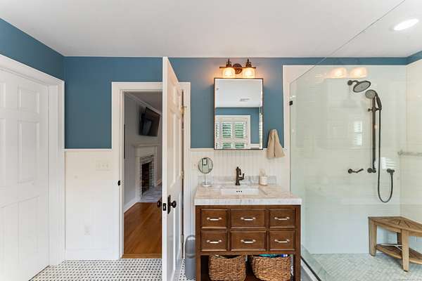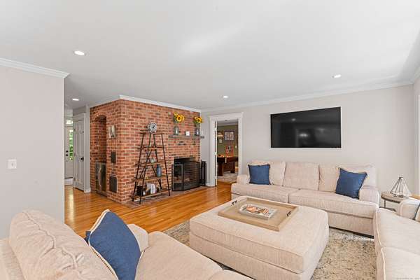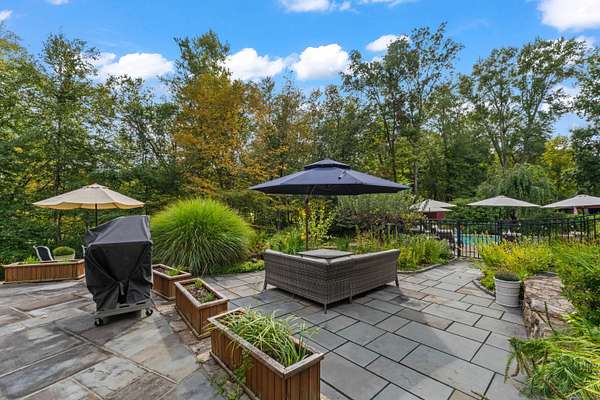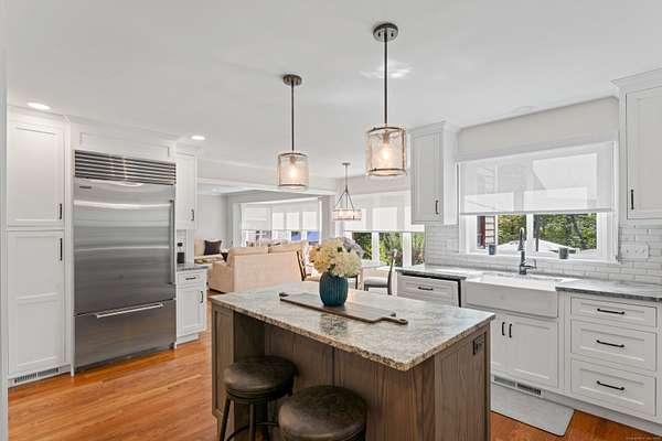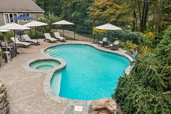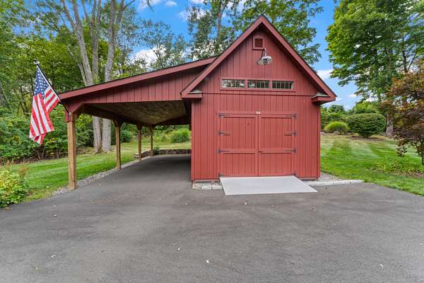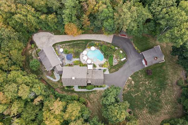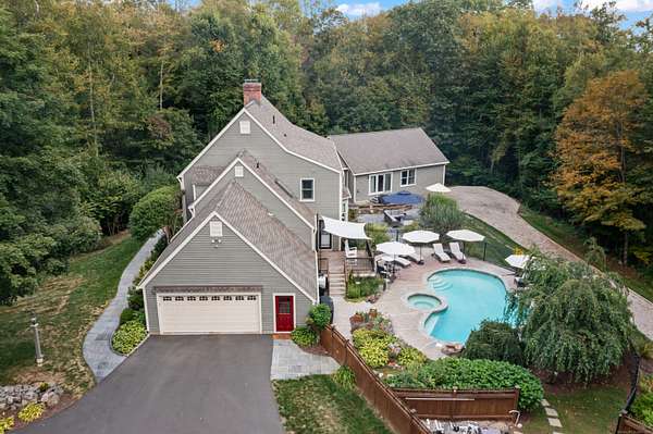 Welcome to 46 Nod Hill Road - an exceptional property that blends timeless farmhouse charm with modern updates designed to impress. Set on a private 2+ acre lot within a desirable cul-de-sac neighborhood, this impeccably cared-for home offers generous space for entertaining while comfortably accommodating family and guests. The main residence features 4 bedrooms, 2.5 baths, 3 fireplaces, a brand-new chef's kitchen with Wolf and Sub-Zero appliances, and an open, sun-filled floor plan. Connected by a breezeway, the in-law/rental apartment adds versatility with 2 bedrooms, 2 full baths, its own fireplace, a finished walkout basement, and a private garage-ideal for extended family, guests, or rental income. Outdoors, the property lives like a private resort. A heated saltwater pool takes center stage, framed by stone patios, a hot tub, and lush gardens. Multiple seating areas create inviting spaces for quiet evenings or lively gatherings. A detached barn with electricity, heat/AC, and WiFi expands the possibilities-currently a gym, it can easily serve as a studio, office, or creative space. Every detail reflects thoughtful design, combining comfort, style, and privacy. From morning coffee in the new kitchen to sunset swims by the pool, this is a home built for living beautifully every day.