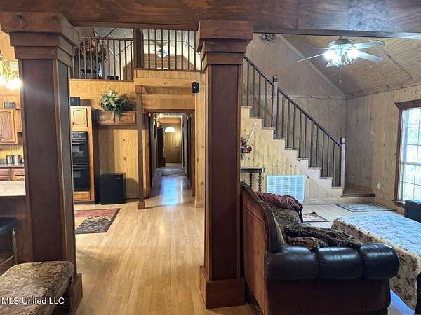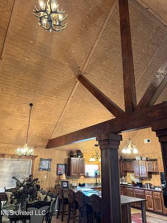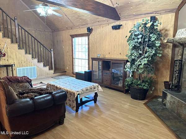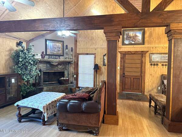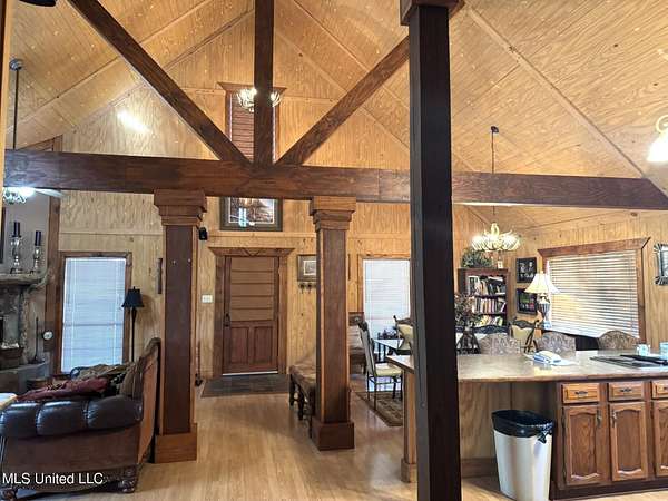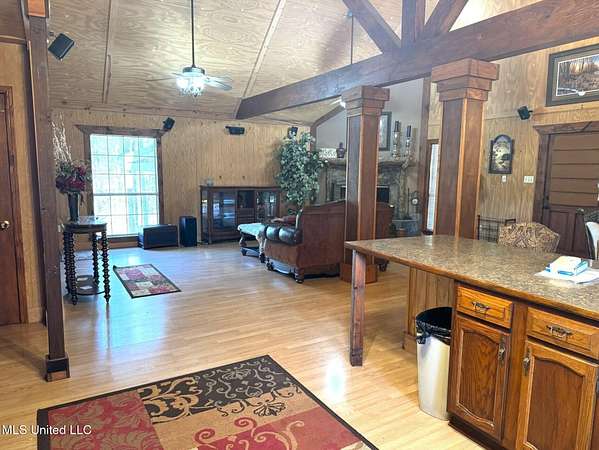 LOOKING FOR A RESIDENCE OR A WEEKEND HOME? This cabin style home is sitting on 8.4 acres located in Elgin Subdivision. Just a couple of minutes from the city limits and in close proximity to shopping, restaurants, hospital and appx. 10 minutes to downtown Natchez & the Ms. river. This all electric home is one level with a loft & features 4 bedrooms & 2 baths. High vault ceilings with exposed beams & interior columns. Spacious open floor plan with kitchen, dining & den with a corner woodburning fireplace. Kitchen has double ovens, breakfast bar & stained cabinets. Sit on the back deck and enjoy nature at its best overlooking a pond. Other amenities are a metal roof, covered front porch, plug in for RV, single car covered parking & a circular driveway. All measurements & dates are approximate & buyer is welcome to verify.