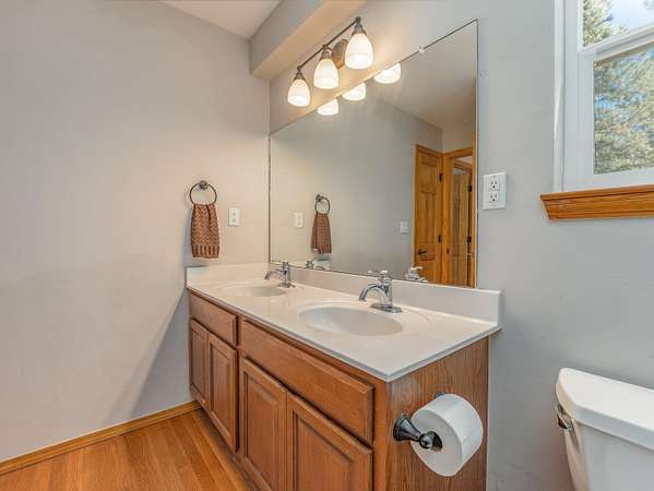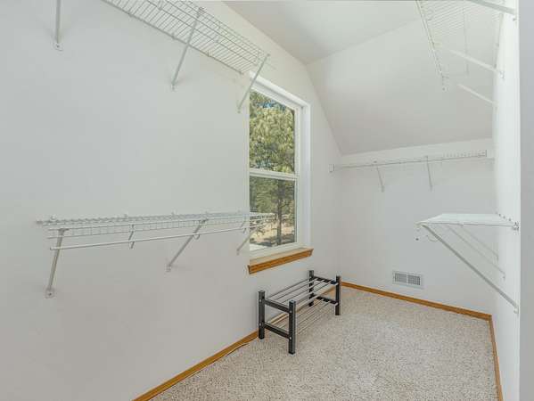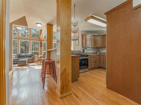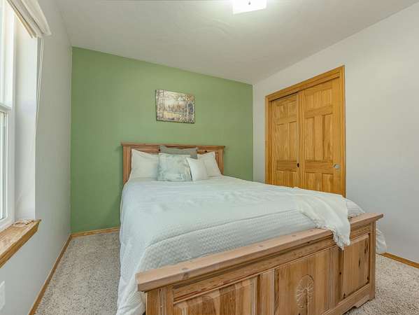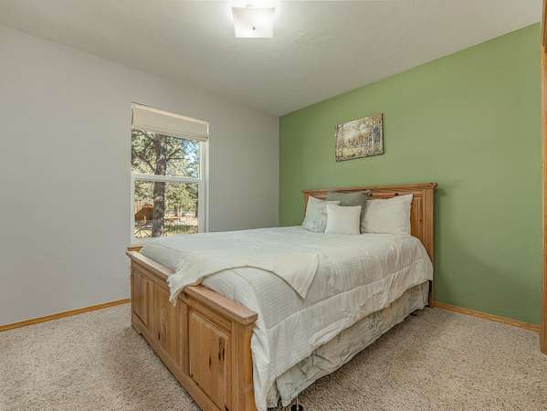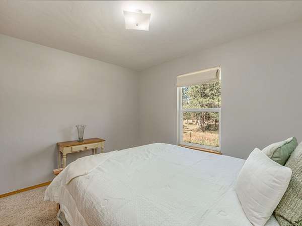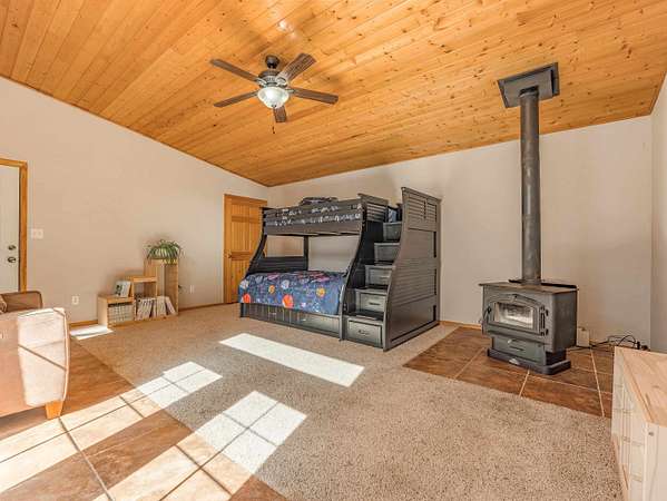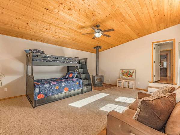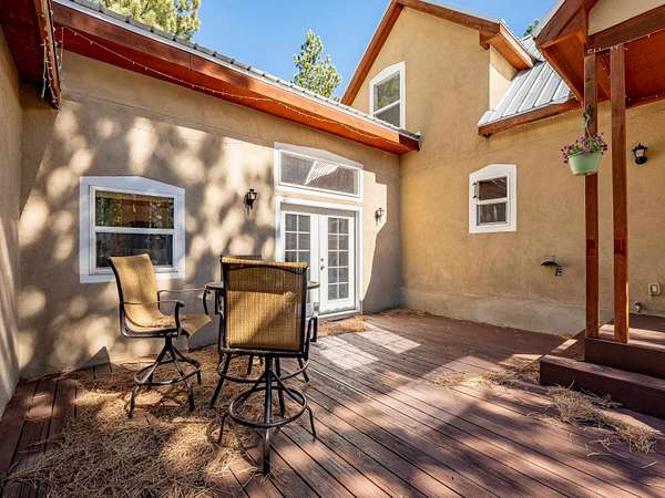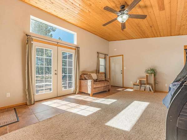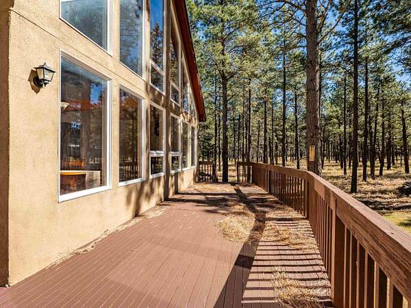 Bask in picturesque mountain charm and homey comfort with this inviting property at 46 Susan Lane! Don't let the Black Lake location fool you - this home is just a quick, scenic drive to all the amenities and activities of Angel Fire, without the constant in-town bustle! The main level features a wide open living area made even more spacious by the vaulted ceiling and the sunny window wall. The kitchen is well-equipped, featuring an extra-large countertop for easy meal prep and additional seating. Two guest rooms and a full bathroom complete the comforts of this level. The primary suite is private on its own floor and exudes a relaxing, quiet atmosphere, with a cozy reading nook and large full bathroom with two vanities and a (bonus!) large soaking tub! A spacious and bright bonus room off of the main level is great as a bunk room for the kids, workout space, or however you see fit. An unfinished space above the extra large attached garage is the perfect canvas for a lock-off apartment, art studio, game day den - just bring your imagination! Soak up that coveted New Mexico sunshine from the spacious deck, or roam through the whispering pines covering the generous 4.564 acres surrounding the home. Bring your horses, the kids, the ATVs, or just yourself. Whatever adventures bring you to the Sangre de Cristo mountains, 46 Susan Lane is the perfect spot to kick up your feet and rest a while.