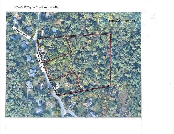 A rare development opportunity in the heart of Acton. This unique offering is comprised of 3 adjoining, separately-deeded parcels, with two Single-family homes, all to be sold together. Totaling 8.24 acres (5.91 upland wooded) with 612 feet frontage, the parcels abut Acton Arboretum's 65-acre conservation area and trails. Acton is a vibrant and quickly growing Metro-west community which boasts a school system consistently rated top 5 in Massachusetts. Utilizing the Rt 2 and Rt 495 commuter corridors, the town has nearly tripled in population in the last 3 decades. Bring your big ideas for Single-lot development or a Planned Conservation Residential Community. ANRAD & Concept Plans in-hand. Perc Test completed- awaiting report. See paperclip for additional documents. One of the homes is a 4 BR 2,217 sf Antique c.1820. The other home is a 4 BR 1,539 sf Cape c 1950, which rented for $2800 /m. The homes will not be sold separately and will pass with the 3-lot group sale, As is - Where is.