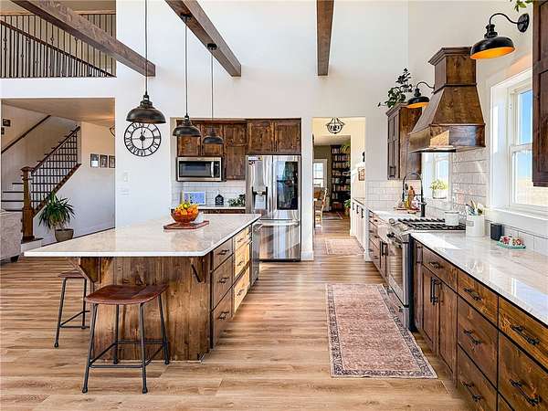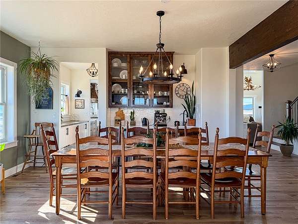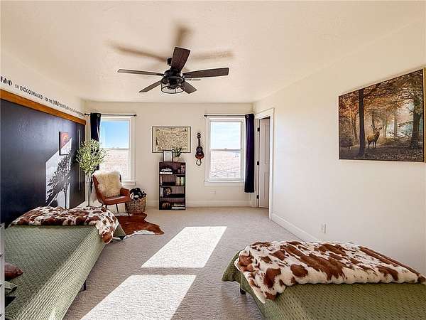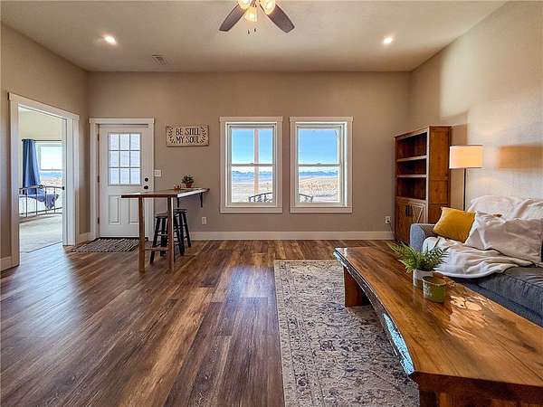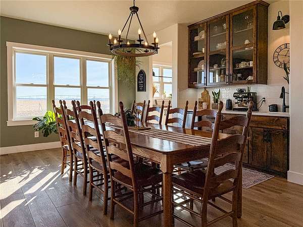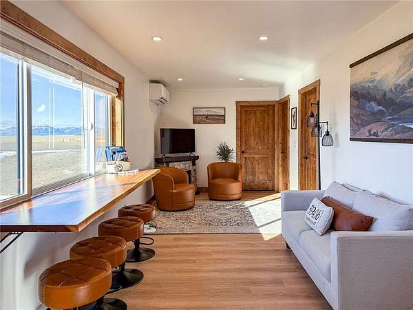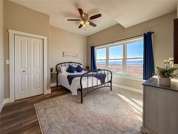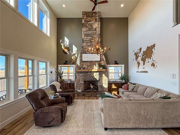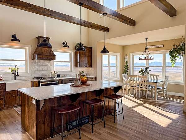 Welcome to a stunning builder's-own estate home, which includes a LL apartment, a detached shop w/ an apartment, on 20 acres, w/ a spring-fed creek and unsurpassed ROCKY MOUNTAIN FRONT views. The 5600' home built in 2022 w/ over-the-top, high-end features. The stylish "dream kitchen" has granite countertops, SS appliances, high, beamed ceilings and an enormous walk-in pantry. Dining nook leads off to a covered deck and it abuts a living space, w/ a floor-to-ceiling stone fireplace. On the same level, find another dining room w/ a butler's pantry and an add'l living space w/ a stone fireplace. Plus, a 3/4 bath and den/bedroom, mud room and attached, heated garage. The upper level offers 3 beds, w/ walk-in closets, primary bed w/ covered deck, bathroom w/ a handsome tiled shower, vessel soaking tub and double sinks and another good-looking full bathroom and a generously-sized laundry room.