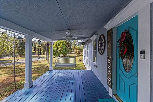 Discover true country living just minutes from town on this fully fenced 2.5 acre property in desirable Naples. A long paved driveway welcomes you home to a charming 4-bedroom, 2- bath residence featuring a classic front porch swing, mature shade trees, and peaceful privacy acreage living provides. This property is beautifully set among majestic oaks, fruit trees, and open green space- ideal for anyone seeking room to breathe, grow, and enjoy outdoor living. With 3 separate decks, you'll have the perfect spots for morning coffee, evening relaxation, and entertaining. The large yard also includes a fire pit area, chicken coop, RV hook up, concrete slab for boat/ RV, and plenty of room to add a pool or build a second home. An electric gated entrance with remote access adds convenience and security. Inside, the family room centers around a cozy fireplace, creating a warm, welcoming space for gatherings. This acreage property offers freedom to have horses, chickens, gardens, or recreational toys- a lifestyle rarely found this close to town. Whether you're looking for tranquility, space, or future expansion, the possibilities here are truly endless.