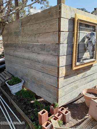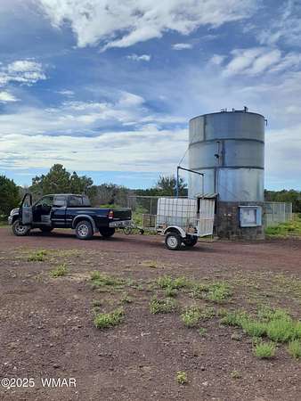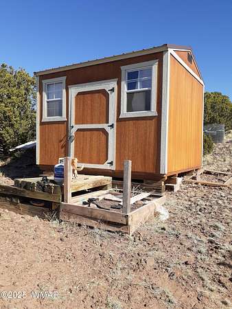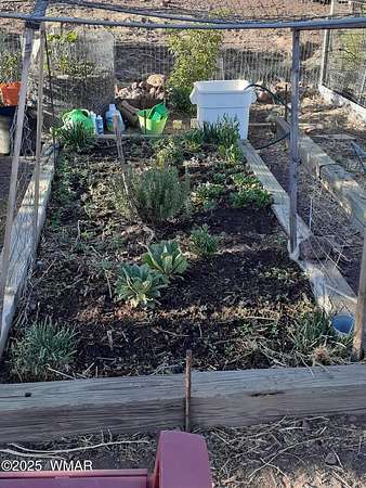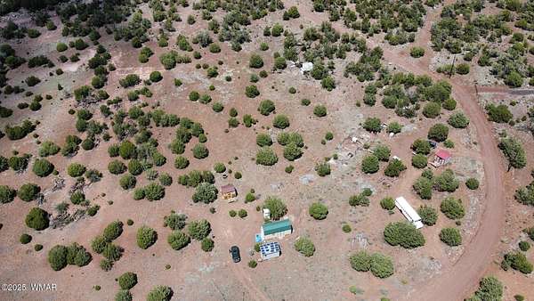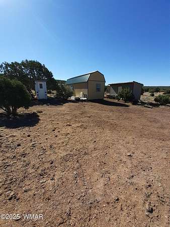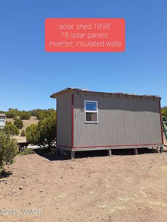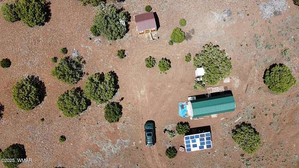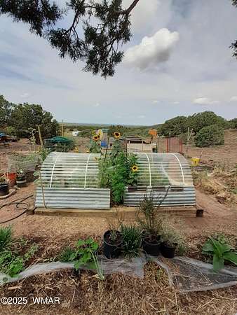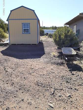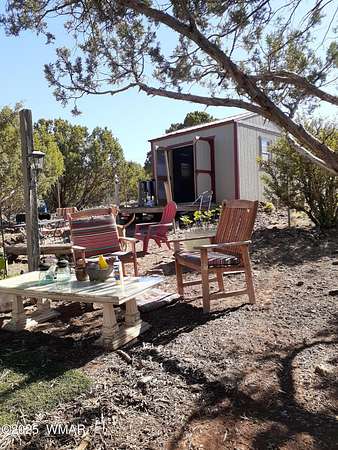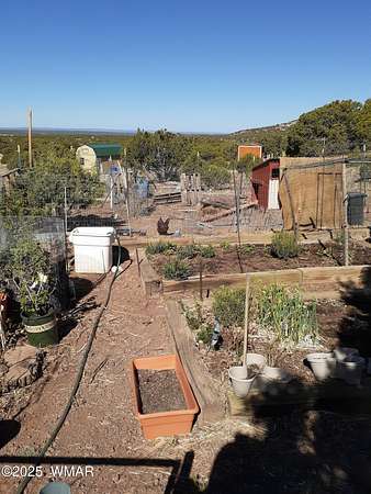 Views! This 2 parcel property has amazing views to the South and West. Property is set up with 3 living spaces, 1 partially converted school bus and a utility shed. Enjoy an outdoor shower in the warm summer months, and a cozy fire pit in when the temperatures cool down. A fenced garden area and chicken coop with run are ready for use. Buildings include a 10 x 18 structure for solar set up and storage, with 18 solar panels (batteries and inverter not included), a 10 x 26 two loft new shed, unfinished and insulated and two 10 x 12 sheds built out for individual living quarters. Water is available at community wells, t. Water tank with trailer included. Partially complete observation deck at the top of the hill to the north! Properties can be sold separately, 50% down, 5% 4 yr option. Owner is willing to sell properties separately, willing to carry with 50% down, 5% interest over 4 years.
