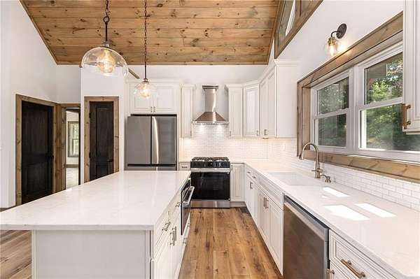 New construction on 5.66 acres with year round unobstructed North Georgia Mountain views. Welcome to your brand new mountain retreat! Nestled on 5.66 private acres in Ellijay. Step inside to find an open inviting layout designed for both relaxation and entertaining. The spacious kitchen features a large center island with granite countertops, stainless steel appliances complement the modern cabinetry, while the open-concept design flows seamlessly into the family room with vaulted tongue and groove wood ceilings, FIREPLACE and jaw dropping mountain view. Continue to the outdoors through the French doors, opening to a spacious rear deck, perfect for morning coffee or sunset gatherings. The primary suite is a true retreat with private deck access through double glass doors and a spa-inspired bathroom featuring a soaking tub, separate tiled shower with stone accents. 2 more spacious bedrooms and full bath finish the main level. The lower level features 2 BONUS ROOMS, a full BATH and a large REC ROOM giving you endless options for a home office, gym, media space or guest accommodations. Every detail of this construction highlights quality craftmanship and attention to detail, from the bright airy interior to the thoughtful finishes throughout. With it's expansive acreage, serene setting and sweeping mountain backdrop, this property is ideal for those both seeking privacy and a connection to nature. Don't miss this rare opportunity for those wanting full time living, a second home or an income producing VACATION RENTAL. All just 3.5 miles from downtown Ellijay's shops, restaurants and wineries.