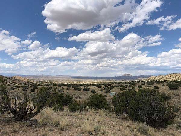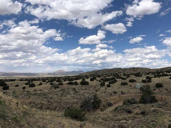 Eighty glorious acres three miles south of Madrid off the Turquoise Trail. The views are stupendous, of the surrounding hills and the view of the valley to the west. The land is hilly but there is a plethora of building sites with views. There is a good dirt road up to the top of the first 40-acre parcel. There is no graded road beyond that. A shipping container is located on the lower 40 acres on a large mostly level spot that would be a great place to build. There are no utilities in place, and no electric in the area. It's a great place to live off grid in the splendor of solitude!