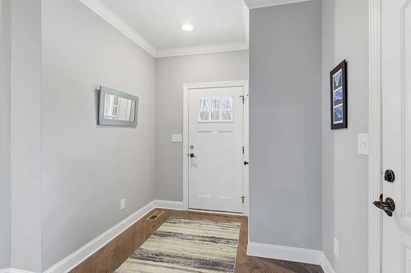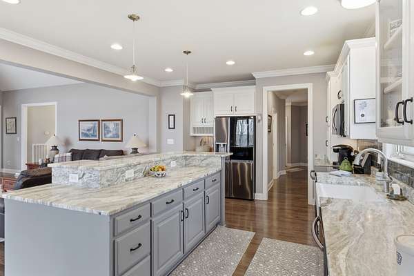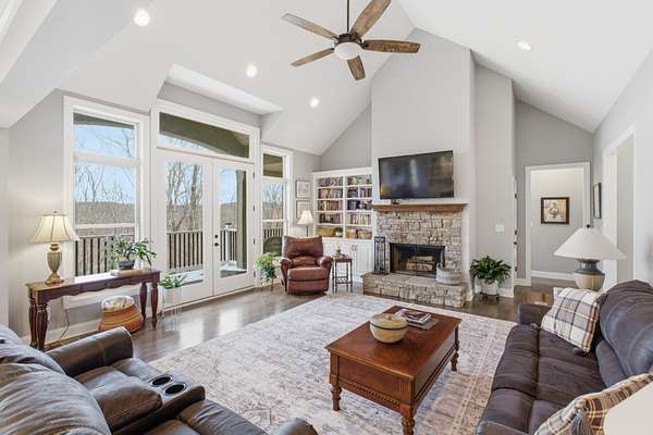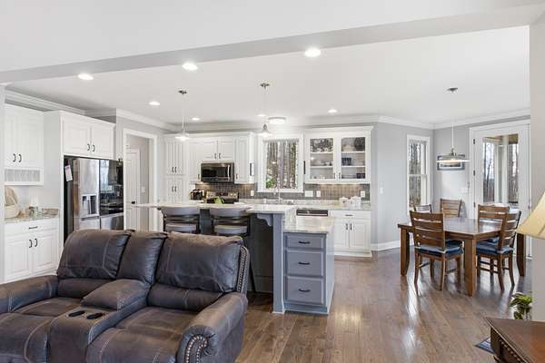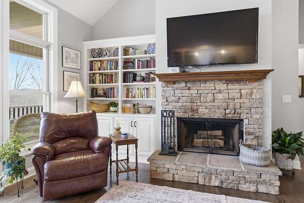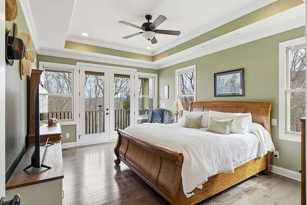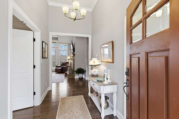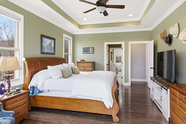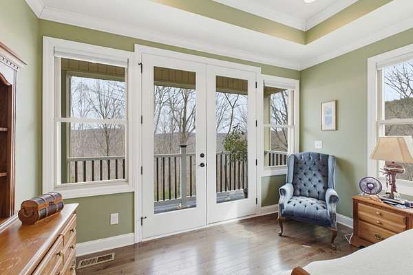 Perched atop a stunning bluff on five private acres, this beautiful three-story home offers breathtaking views of Franklin Forest and a luxurious living experience within a beautiful gated community. The residence features an elegant interior highlighted by soaring ceilings, hardwood floors, granite countertops, and a cozy wood-burning fireplace. Designed for both comfort and functionality, the home includes an oversized two-car garage and an expansive unfinished walkout basement, providing significant potential for customization.