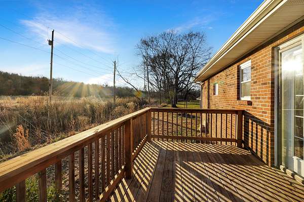 Find peaceful country living in this spacious one level brick home on 3.4 acres. Property falls on both sides of the road with clear and level area for gardening, workshop or you decide. Home has had addition and renovation along the way and with a little upgrade could be the perfect gem! Recent upgrades include Metal roof-'24- Water heater-Central H/A-'23- septic tank-'21-many replacement windows and so on. You have gathering room, family room, office area and a large sunroom to enjoy the outdoors from the inside! Kitchen offers breakfast area and separate dining room. Find a wood burning stove as an alternate heat. You have a back covered patio and an open sundeck. Storage building and wellhouse combination sits along side the home with space for freezer and such. Property is in process of being surveyed with division markers in place. No restrictions, no zoning, creek runs along the back of the property. Location is close to Montgomery County line with easy back road drive to Clarksville.