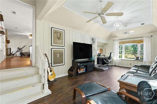 Tucked away on nearly 4 acres in South Effingham, this Lowcountry-style home offers a quiet, functional retreat with room to live, work, and explore. A wide front porch welcomes you under mature trees, while a 40-foot screened porch spans the back of the home with peaceful views of a spring-fed pond-perfect for morning coffee, afternoon reading, or casting a fishing line. Inside, the layout balances comfort and practicality. The kitchen features an apron-front sink, white cabinetry, and an island that opens to casual living space. The main-floor primary suite includes an en suite bath and a spacious walk-in closet. A wood-burning fireplace adds warmth to the living area, and natural light filters in through large windows. The property is as functional as it is scenic. A rustic party barn sits near the pond, ideal for gatherings or weekend projects. There's a detached workshop, a 3-bay carport, RV/boat parking, and a fenced dog run. A ready-to-use chicken coop, garden area, and open lawn space provide opportunities for self-sufficiency and outdoor hobbies. Originally two separate parcels, the 3.68 acres may offer future subdivision options (buyer to verify). Located on a quiet county-maintained road, this property is served by well and septic, with no HOA. Zoned for South Effingham schools, it offers a rare mix of privacy, character, and flexibility just outside city limits.