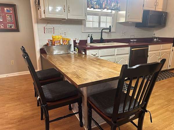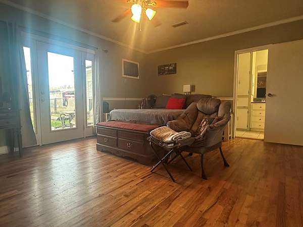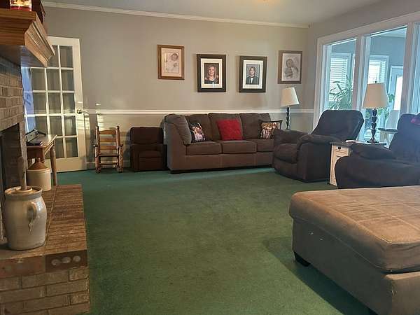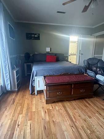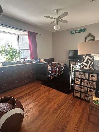 Est $1,253/moCharming home with 3BR/2BA, kitchen has new appliances. Beautiful sunroom is heated and cooled by window unit. Wood floors under some carpet. Outside has lots of pecan trees and storage buildings.