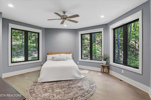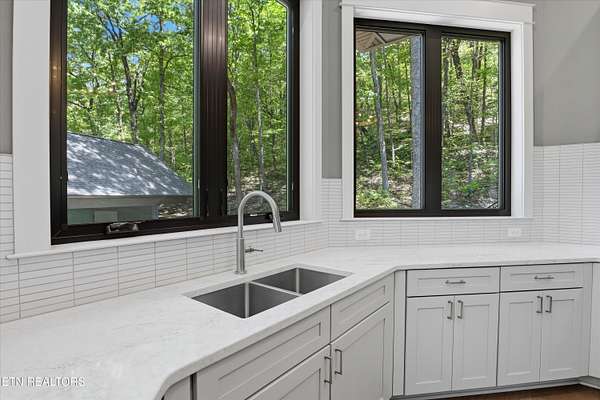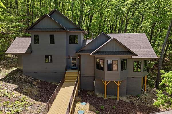Step inside this one-of-a-kind home designed by architect Gary Best to give the owners a feeling of living among the trees. Set atop a peak nestled between trees and overlooking wooded valleys in the beautiful Retreat at Butterfly Gap, this home offers genuine seclusion while being less than eight miles from downtown Maryville. As the home located at the top of the gated neighborhood, the views looking out through the trees toward Maryville are unmatched. Feel like you are on vacation in the National Park without the long drive to town. Inside, the high end finishes and thoughtful touches by the builder will inspire you. Gazebo ceilings in the living room and kitchen make the space brighter and more open, setting the tone for the rest of the home. The primary suite with large walk-in closet connects to the laundry area and the primary bathroom comes with a large, tiled walk-in shower with dual shower heads, creating that spa-like treatment without needing to leave home. If that's not enough, outside is a screened porch to enjoy the trees and sounds of leaves rustling, water flowing, and birds chirping. Keep an eye out for turkeys and other wildlife that frequent the property. And if you want to spend more time outside, the home has an attached workshop/storage area on the 2-car carport. That along with the neighborhood amenities including a creek-fed pond with multiple docks, a quiet overlook to enjoy the view of Chilhowee Mountain and the valley below, and a neighborhood gym facility overlooking the water make this home and community a place you'll never want to leave. This incredibly designed home, tucked in one of Blount County's most distinctive gated communities is a rare find in this market and will not last long. Schedule your private showing today.