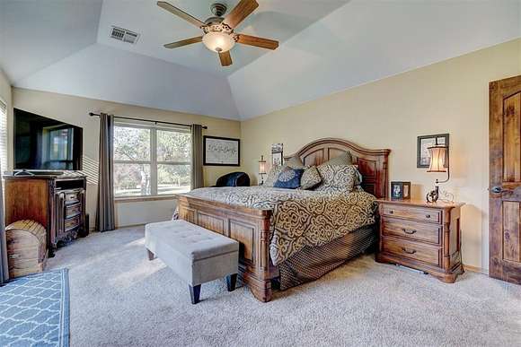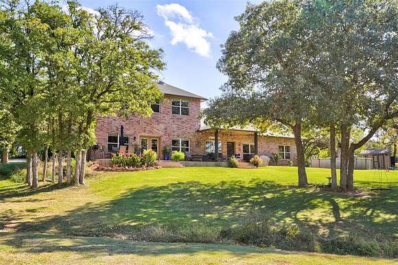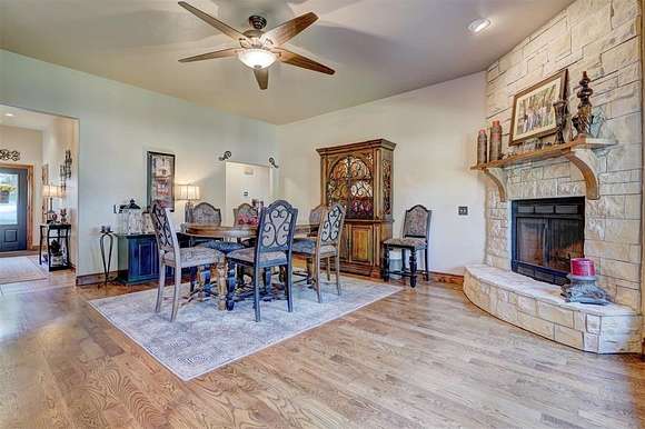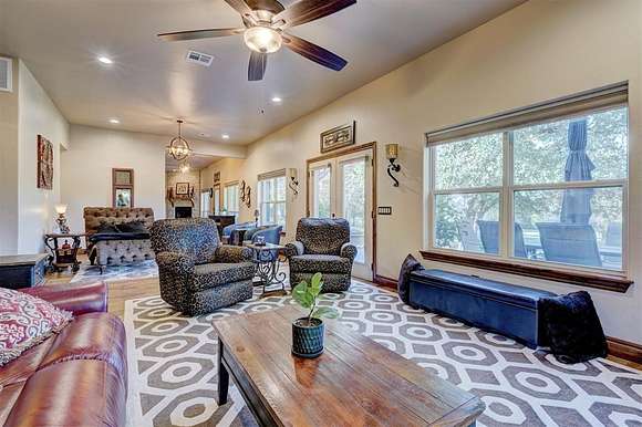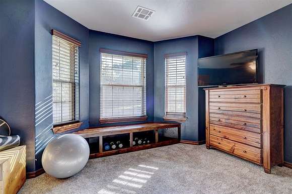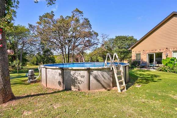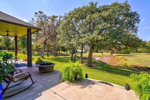 Don't miss out on your chance to own 4 acres (MOL) of UNPLATTED land in NE Edmond with mature trees & a pond. This home offers a blend of serenity & sophistication. The living room on the ground floor showcases wood floors, large windows, & access to the back patio, which provides breathtaking views of the pond & the surrounding mature trees. The heart of the home lies in the functional kitchen, w/ modern granite countertops, stainless steel appliances, & an abundance of storage. A casual dining space adds a touch of convenience. The second living space boasts a wood-burning fireplace w/ a statement hearth and is currently being utilized as a formal dining space. With access to the covered patio, it's perfect for cozy gatherings. The primary bedroom, with tray ceilings and large windows, provides a private sanctuary. It has its own access to an open patio and a lavish ensuite bathroom, complete with dual vanities, a soaking whirlpool tub, a walk-in shower, and an extra-large walk-in closet. An office with wood floors and a large window provides an ideal workspace. The spacious laundry/mudroom is equipped with a sink, folding area, and ample storage for added convenience. Three guest bedrooms are located downstairs, two are equipped with walk-in closets. Wrapping up the lower level with 2 updated full guest bathrooms with shower/tub with granite countertops and tons of storage. Upstairs, guest bedrooms 4 and 5 both feature walk-in closets. A full guest bath on this level includes granite countertops and storage. The large game room/flex room upstairs offers additional storage and boasts large windows, creating an inviting space. Stepping outside, both covered and open patios provide mesmerizing views of the pond and the private surroundings, making it the perfect spot to unwind and appreciate the beauty of nature. For those hot summer days, there's an above-ground pool to keep you refreshed and entertained in your own backyard.