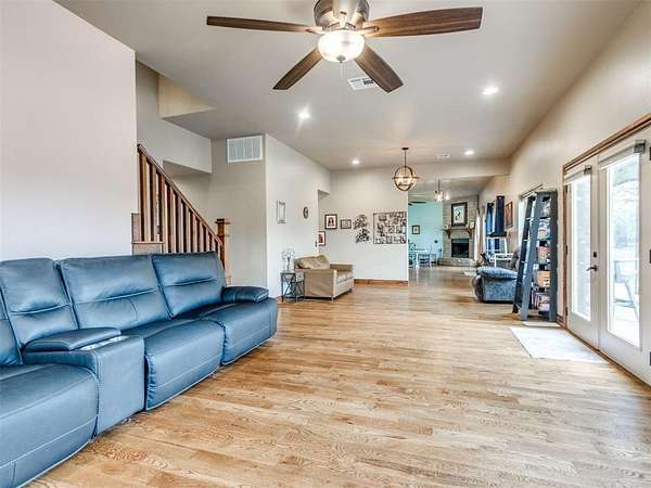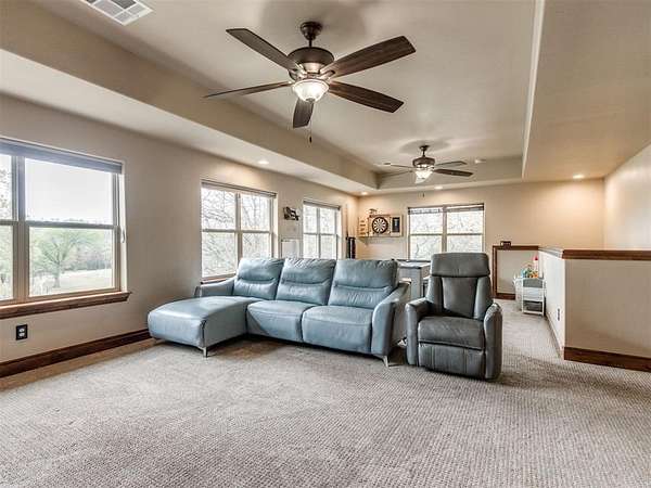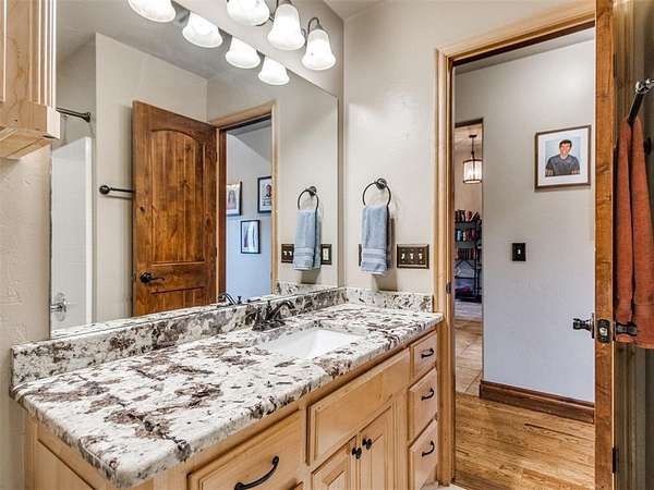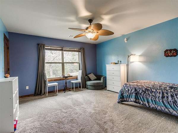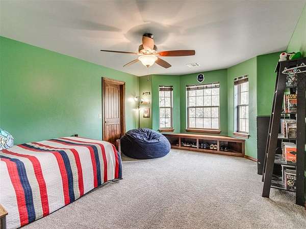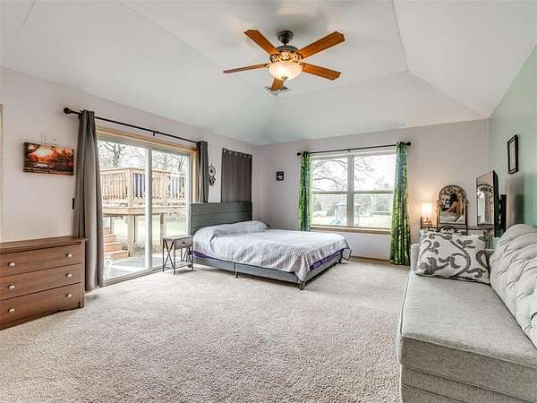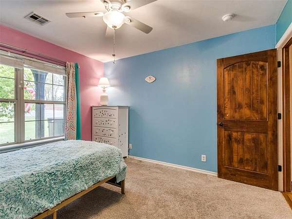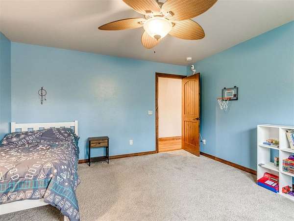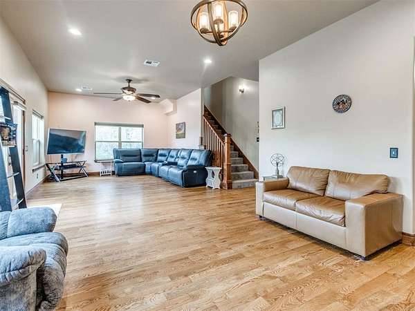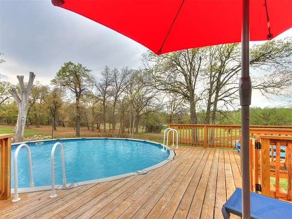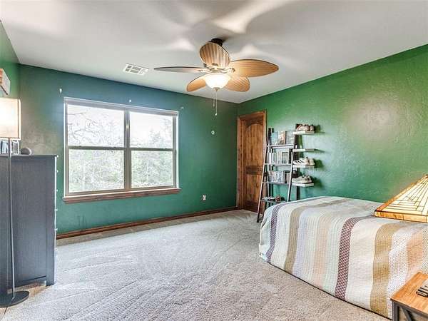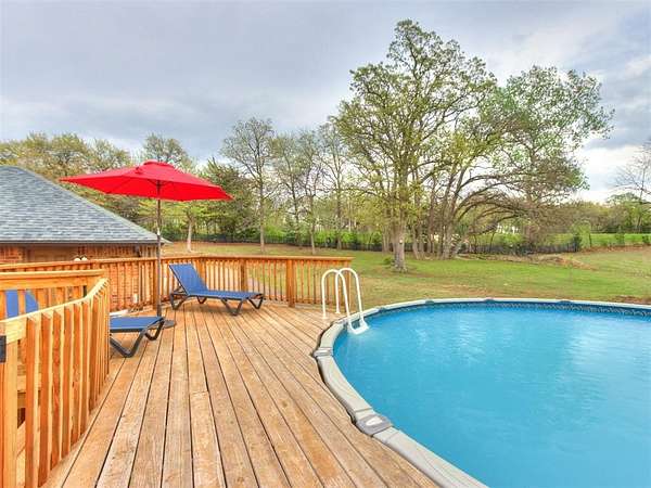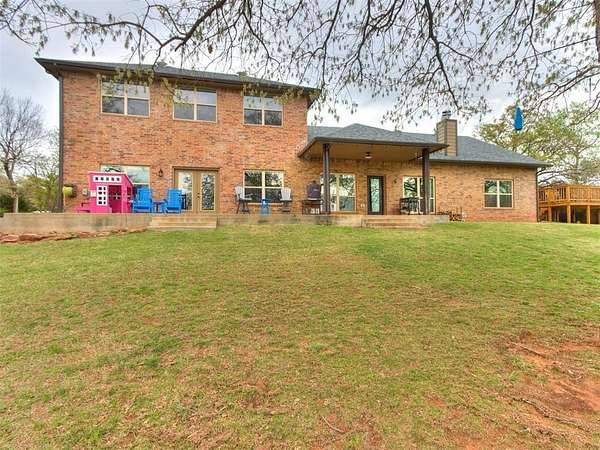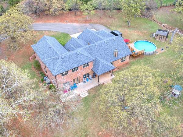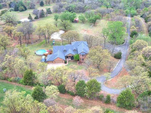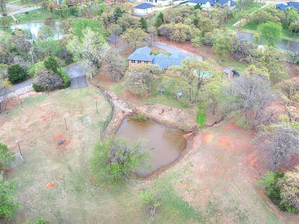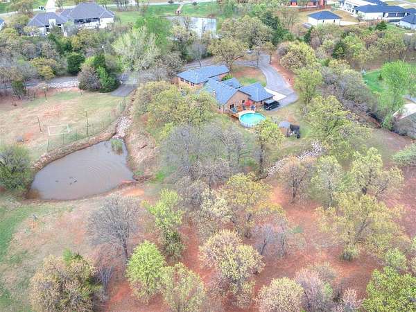 MUST SEE! Experience the perfect blend of comfort, privacy, and everyday convenience in this stunning North Edmond estate! Tucked away on a beautiful 4 acres & accessed by a newly paved private road & driveway, this property offers a level of seclusion rarely seen in Edmond. Surrounded by mature trees & abundant wildlife, the setting feels like a private retreat - yet you're located in the most sought after Edmond school district. Inside the home has thoughtfully updated living space with modern lighting & fresh paint. There are 6 spacious bedrooms & 4 full bathrooms, a home office/gym; this home is ideal for families of all sizes or those that love to host. Two expansive living rooms provide flexible spaces for entertaining, relaxing, media room, or play area. Safety & peace of mind come standard with a large in-ground storm shelter. Step outside and discover a true oasis - complete with a beautiful pool (with updated equipment) and oversized pool deck, perfect for summer gatherings, quiet mornings, or evening sunsets. The property also has a private pond & a soccer/sport field with lighting, offering endless opportunities for recreation and enjoying the outdoors. This home offers the rare opportunity to enjoy privacy, space, exceptional outdoor living & natural beauty without sacrificing location. Whether you're watching the deer roam through the trees or hosting friends poolside, this home offers an unheard of level of privacy, usable acreage, & amenities that are truly hard to find.