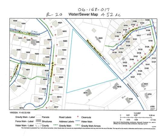 NO HOA - ESTATE HOME LOCATION or MULTI HOMES - HORSES OK - Approximately 4.52+/- Acres -Original survey Avail of entire 4.52 acres. Rare Find - Great Schools, Location-Shopping. This parcel was never incorporated into the Town of Waxhaw, No Waxhaw Taxes - ONLY UNION COUNTY TAXES. PARCEL ZONED R20 More than one home per acre - As per County Planning - SEWER EASEMENT AVAILABLE FROM ADJOINING SUBDIVISION Contact Union County Planning - Already zoned R20, can possibly build 7 homes on this site, submit your site and septic study plan to Zoning - Call for more information. Easement available from Adjoining Subdivision however Neighboring home Easement may be needed to join into this parcel. Buyer responsible for tap fees for any and all type of septic systems and water systems. COUNTY WATER AVAILABLE ON MAIN ROAD. Seller also willing to sell Two tracts to be divided from the entirety 4.52+/- acres. see MLS 4106600 New owner says sell price lowered - GREAT OFFERING.