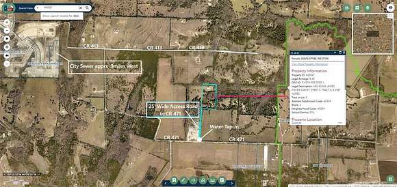 Est $17,186/moPristine acreage available in the Melissa ETJ zone. Ready for immediate development. Water tap-in to a 3' waterline on site at CR471. New Housing developments in progress .9 miles west on CR413. Near the Melissa sports complex and planned school nearby. Other listings available include MLS #20781738 and #20781740.