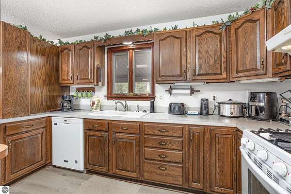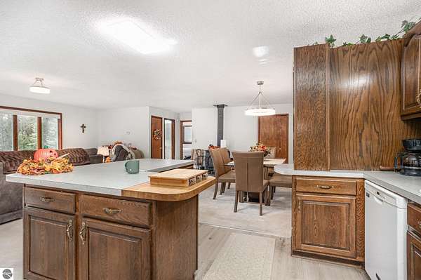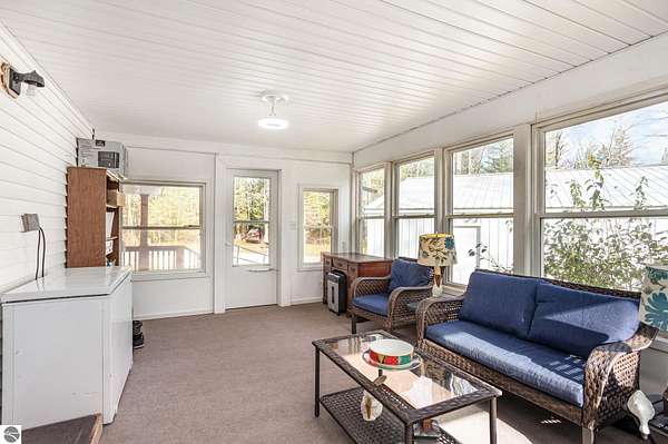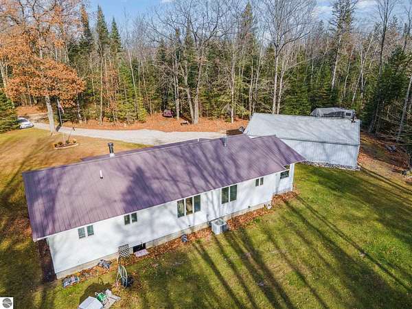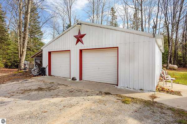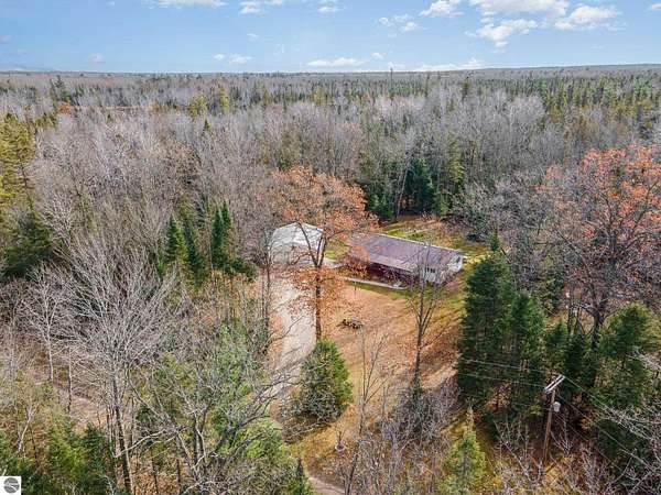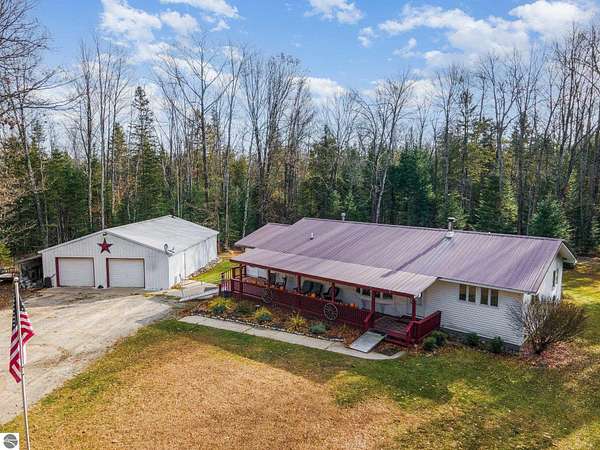 Discover peaceful Northern Michigan in this well-kept home located within the Lakes of the Green Association--a completely private development offering shared access to two private lakes, boat launches, a park, and a campground. Only members and their guests are permitted, providing an added sense of privacy and exclusivity. Unlike an HOA, the low $200/year association fee covers year-round road maintenance and upkeep of the lakes. This comfortable 2-bedroom, 1.5-bath home sits on 10.60 acres, giving you plenty of space to spread out and enjoy the outdoors. An additional room currently set up as an office gives you extra space that can easily be used for whatever fits your needs. A bright 12x19 three-season room and a large covered front porch offer great spaces to relax and enjoy the views! The south edge of the property borders the Huron National Forest, making it easy to head out for hiking, hunting, or exploring. A handy 30x40 pole barn with a woodstove offers great storage or a warm spot to tinker on projects. The land is full of wildlife--it's common to see deer, turkeys, and bear on the property and even right in the back yard! This one won't last long, schedule your showing today!