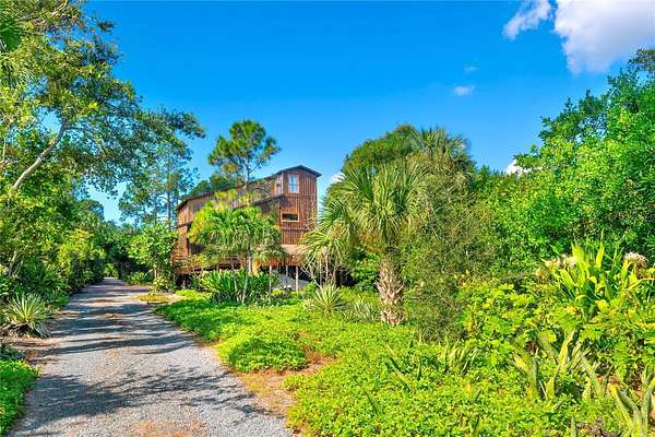 From I 275 take the exit to St Pete Beach, take last turn before toll booth into Dolphin Cay community, please tell the gate that you are going to stilt houses, take immidiate left after the gate, 2 speed tables later there will be a hidden gravel driveway to the left.