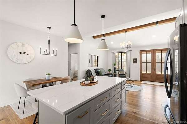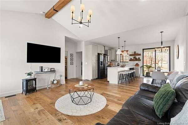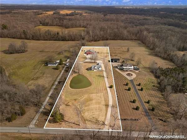 Custom built in 2023, this stunning 5 BR/3BA home offers modern luxury in a serene country setting with peaceful pond views situated on 4.04 acres. From the moment you arrive, the gorgeous double-entry hardwood front doors create a grand first impression. Inside, you'll find engineered hardwood flooring, quartz countertops with matching quartz backsplash, and a sleek stainless-steel appliance package. The open layout is filled with natural light from Anderson black gridded casement windows, stunning light fixtures throughout, and an impressive 8' sliding back door. The primary suite offers a private retreat with an ensuite bath featuring a freestanding jetted tub, spacious walk-in closet complete with a washer and dryer for added convenience. The fully finished walk-out basement showcases epoxy flooring and a large family room that opens directly to the pond, creating peaceful water views from both the lower level and the covered front porch. Enjoy outdoor living year-round with covered front and back porches, both with ceiling fans. A second-floor bonus room offers flexible space for a home office or guest retreat. Luxury finishes, designer details, and tranquil surroundings - this one truly has it all. Sq ft & rm sz approx.