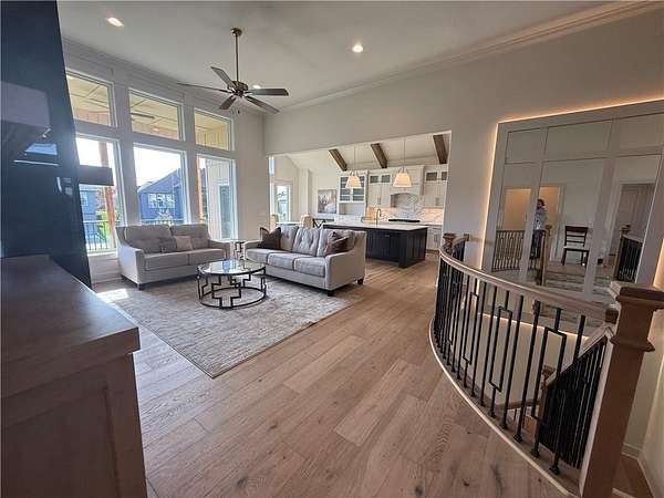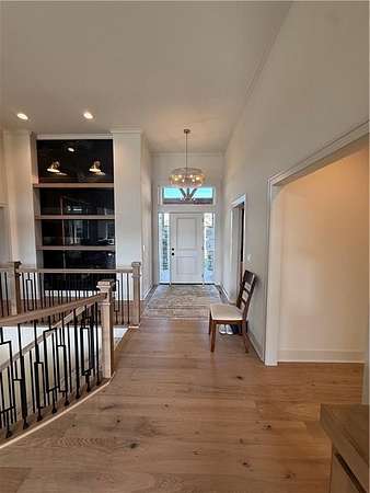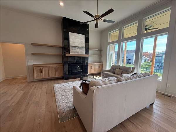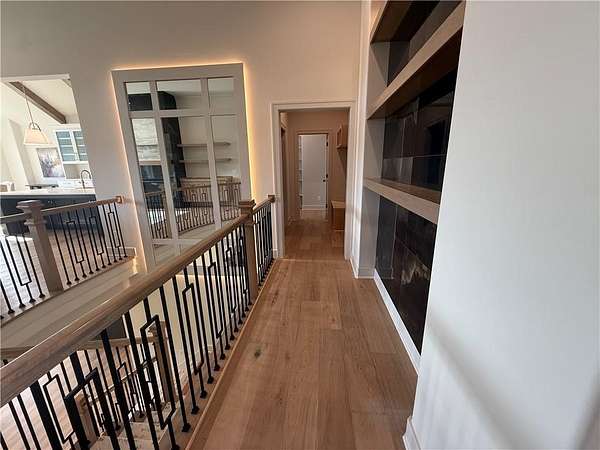 This stunning, newly built Reverse 1.5 Story home blends modern design with exceptional craftsmanship. Featuring 4 bedrooms and 4 baths, it showcases exquisite details, including rich wood floors, soaring open ceilings, and custom cabinetry throughout. Thoughtfully designed built-ins enhance both style and functionality in the living spaces. The private master suite serves as a serene retreat, offering ultimate comfort and luxury. A unique suspended front stoop adds character to the home's exterior, while the gourmet kitchen is a chef's delight, complete with a spacious island, walk-in pantry, and high-end appliances. The lower level expands the living space with additional bedrooms and is perfect for entertaining. A standout feature is the wet bar, boasting a striking live-edge countertop. Whether hosting guests or enjoying a quiet evening, this beautifully crafted home is designed to suit your lifestyle. Photos and drone are of a similar plan and finishes/details may vary.
