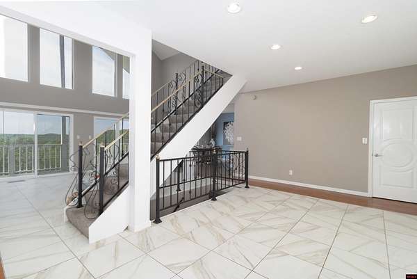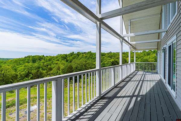 3 level house with 3 bedrooms and 3 full bathrooms! Sitting on NINETEEN acres! You'll love the cathedral ceilings with a wall of windows! Primary ensuite has luxurious bathroom and lots of closet space! 2 bedrooms, 2 bathrooms & a bonus family room in the full basement! Enjoy the views from the spacious & private decks in the back. The wooded view of your 19 acre backyard doesn't disappoint! The kitchen has a generous granite-topped island and lots of counterspace! Real hardwood & tile floors in the main living areas are such a nice touch! The loft can be extra guest, office space, or an awesome reading nook with a view! With the expansiveness of 19 acres, you've got room to do whatever your heart desires! Build a shop, weekend cabins for extra income, or put your own business in with highway frontage! Less than 2 miles from Lake Norfork and public boat access! 1/2 mile up the hill from Whispering Woods Grill and Cabins! This gives all the room to spread out, Interior and Exterior!