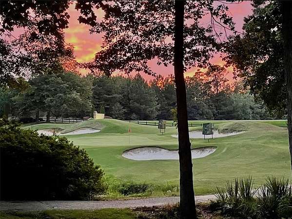 Offered for the first time, this custom-designed home captures sweeping views of the entire 7th hole at Royal Lakes Golf & Country Club, with additional views of the Hole 8 tee box. Privately set on 1.67 acres of mature, wooded landscape, this rare estate-sized property enjoys no homes nearby and stunning west-facing sunsets across the course. Designed for today's informal lifestyle, the open floor plan flows effortlessly to a screened porch with TV overlooking the fairway, creating the ideal space for year-round entertaining and relaxing. The spacious island kitchen features an impressive 8' x 4' island with seating for up to six, abundant pantry space, and direct access to the screened porch for seamless indoor-outdoor circulation. A back yard patio provides additional outdoor living space, all oriented toward the golf course and sunset views. The primary suite includes a private balcony overlooking Hole #7 - perfect for lingering over morning coffee or enjoying sunset cocktails while watching the game. Additional highlights include a luxurious primary bath and a well appointed primary walk-in closet designed for efficient organization and functionality. A guest suite features a vaulted ceiling and built-in bench beneath an expansive window, distinctive design elements. Outdoor spaces are equally inviting, offering generous yard space for play and relaxation.. The bonus room/4th bedroom is perfectly suited for a dedicated office, featuring a private nook for printers and equipment along with a spacious closet and additional tucked-away storage. The oversized 28' x 36' garage was designed to accommodate large SUVs, golf cart, small boat, and storage. A rare opportunity to own a thoughtfully designed home with exceptional golf course frontage, privacy, Augusta-inspired azaleas and stunning sunset views.
